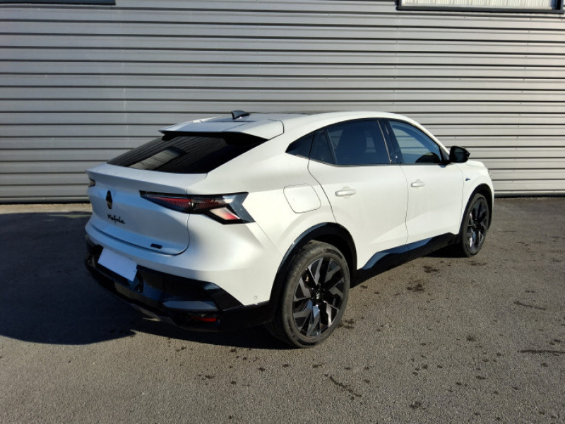 4Control advanced / Aide au parking AV/AR et lateral / Airbags lateraux, rideaux et central AV / Alerte de distance de securite / Alerte franchissement de ligne et assistant maintien dans la voie / Alerte sortie securisee des occupants / Avertisseur d'angle mort et prevention sortie de voie en cas de depassement / Avertisseur de sortie de stationnement en marche AR avec freinage d'urgence automatique / Boite de vitesse hybride multimode 6 rapports / Carte Renault acces et demarrage mains libres / Ciel de toit gris anthracite / Clignotants AR dynamiques / Commutation automatique des feux de route/croisement / Console centrale avec repose main coulissant / Console de toit avec porte-lunettes / Controle de la traction (TCS) / Feux AV adaptive LED vision / Hayon motorise / Jantes alliage 20'' castellet noires diamantees / Kit de gonflage / Lumiere d'ambiance personnalisable / Maintenance connectee, incluse pendant 8 ans / Miroir de surveillance enfants / Mise a jour systeme (via firmware over the air FOTA), inclus pendant 5 ans / Multi-sense / Navigation Google Maps / Notice d'utilisation digitale embarque dans le systeme multimedia du vehicule / Pack connected driving, inclus pendant 5 ans / Pack controle a distance (via lapplication My Renault), inclus pendant 5 ans / Pack Design esprit Alpine exterieur / Pack Design esprit Alpine interieur / Plaque de protection de coffre en aluminium / Retroviseur interieur electrochrome sans cadre / Sellerie mixte Alcantara avec surpiqures bleues et logo Alpine lumineux / Sieges avec systeme ISOFIX / Systeme Multimedia openR link 12" : navigation & services Google integres, audio Arkamys Auditorium / Tableau de bord full numerique 12,3''