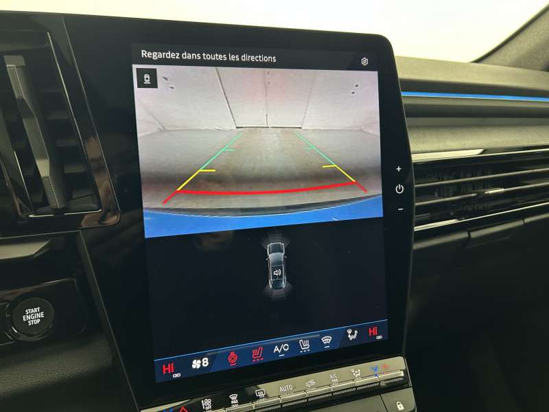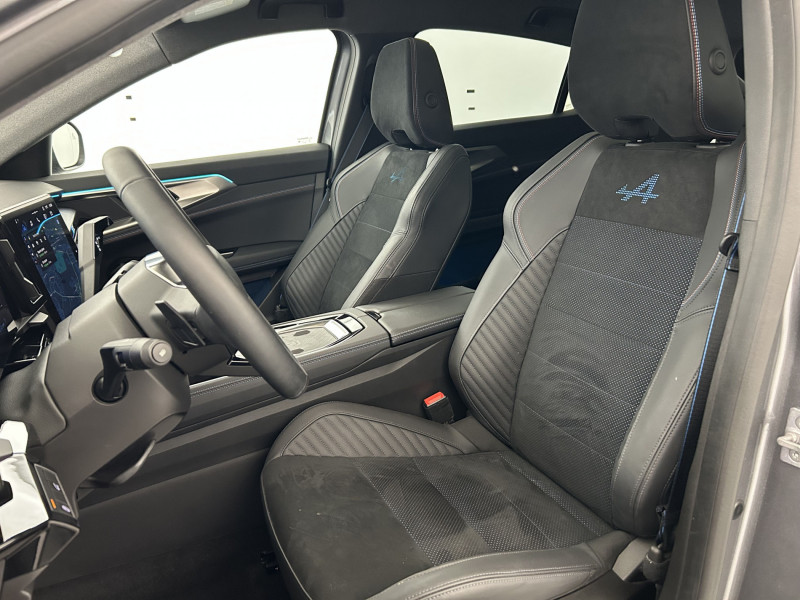 4Control advanced / Aide au parking AV/AR et latéral / Airbags latéraux, rideaux et central AV / Alerte de distance de sécurité / Alerte franchissement de ligne et assistant maintien dans la voie / Alerte sortie sécurisée des occupants / Avertisseur d'angle mort et prévention sortie de voie en cas de dépassement / Avertisseur de sortie de stationnement en marche AR avec freinage d'urgence automatique / Boîte de vitesse hybride multimode 6 rapports / Carte Renault accès et démarrage mains libres / Ciel de toit gris anthracite / Clignotants AR dynamiques / Commutation automatique des feux de route/croisement / Console centrale avec repose main coulissant / Console de toit avec porte-lunettes / Contrôle de la traction (TCS) / Feux AV adaptive LED vision / Hayon motorisé / Jantes alliage 20'' castellet noires diamantées / Kit de gonflage / Lumière d'ambiance personnalisable / Maintenance connectée, incluse pendant 8 ans / Miroir de surveillance enfants / Mise à jour système (via firmware over the air FOTA), inclus pendant 5 ans / Multi-sense / Navigation Google Maps / Notice d'utilisation digitale embarqué dans le système multimédia du véhicule / Pack connected driving, inclus pendant 5 ans / Pack contrôle à distance (via l'application My Renault), inclus pendant 5 ans / Pack Design esprit Alpine extérieur / Pack Design esprit Alpine intérieur / Plaque de protection de coffre en aluminium / Pré-équipement alarme / Rétroviseur intérieur électrochrome sans cadre / Sellerie mixte Alcantara avec surpiqûres bleues et logo Alpine lumineux / Sièges avec système ISOFIX / Système Multimédia openR link 12" : navigation & services Google intégrés, audio Arkamys Auditorium / Tableau de bord full numérique 12,3'' /