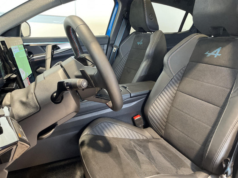 Avertisseur de sortie de stationnement en marche AR avec freinage d'urgence automatique / Hayon motorisé / Alerte sortie sécurisée des occupants / Airbags latéraux, rideaux et central AV / Sellerie mixte Alcantara avec surpiqures bleues et logo Alpine lumineux / Plaque de protection de coffre en aluminium / Feux AV adaptive LED vision / Jantes alliage 20'' castellet noires diamantées / 2 prises USB à l'AV et à l'AR / Système Multimédia openR link 12" : navigation & services Google intégrés, audio Arkamys Auditorium / Contrôle de la traction (TCS) / Boîte de vitesse automatique 4 rapports / Multi-sense / Carte Renault accès et démarrage mains libres / Alerte de distance de sécurité / Kit de gonflage / Sièges avec système ISOFIX / Avertisseur d?angle mort et prévention sortie de voie en cas de dépassement / Notice d?utilisation digitale embarqué dans le système multimédia du véhicule / 4Control advanced / Appuie-têtes AV grand confort / Console centrale avec repose main coulissant / Miroir de surveillance enfants / Lumière d'ambiance personnalisable / Rétroviseur intérieur électrochrome sans cadre / Ciel de toit gris anthracite / Clignotants AR dynamiques / Pack Design esprit Alpine extérieur / Pack Design esprit Alpine intérieur / Navigation Google Maps / Tableau de bord full numérique 12,3'' / Alerte franchissement de ligne et assistant maintien dans la voie / Aide au parking AV/AR et latéral / Commutation automatique des feux de route/croisement / Pack contrôle à distance (via l?application My Renault), inclus pendant 5 ans / Mise à jour système (via firmware over the air FOTA), inclus pendant 5 ans / Maintenance connectée, incluse pendant 8 ans / Pack connected driving, inclus pendant 5 ans / Console de toit avec porte-lunettes / Pré-équipement alarme