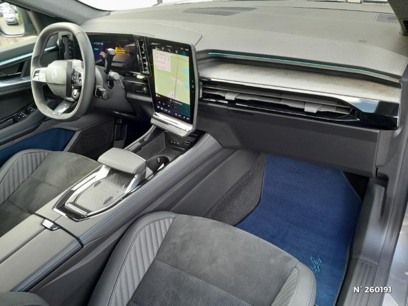 Console de toit avec porte-lunettes / Navigation Google Maps / Feux AV adaptive LED vision / Hayon motorisé / Jantes alliage 20'' castellet noires diamantées / Kit de gonflage / Lumière d'ambiance personnalisable / Maintenance connectée, incluse pendant 8 ans / Miroir de surveillance enfants / Mise à jour système (via firmware over the air FOTA), inclus pendant 5 ans / Notice d'utilisation digitale embarqué dans le système multimédia du véhicule / Pack connected driving, inclus pendant 5 ans / Pack contrôle à distance (via l¿application My Renault), inclus pendant 5 ans / Pack Design esprit Alpine extérieur / Pack Design esprit Alpine intérieur / Plaque de protection de coffre en aluminium / Pré-équipement alarme / Rétroviseur intérieur électrochrome sans cadre / Sellerie mixte Alcantara avec surpiqûres bleues et logo Alpine lumineux / Sièges avec système ISOFIX / Système de reconnaissance du conducteur / Système Multimédia openR link 12" : navigation & services Google intégrés, audio Arkamys Auditorium / Tableau de bord full numérique 12,3'' / 4Control advanced / Multi-sense / Aide au parking AV/AR et latéral / Airbags latéraux, rideaux et central AV / Alerte de distance de sécurité / Alerte franchissement de ligne et assistant maintien dans la voie / Alerte sortie sécurisée des occupants / Avertisseur d'angle mort et prévention sortie de voie en cas de dépassement / Avertisseur de sortie de stationnement en marche AR avec freinage d'urgence automatique / Boîte de vitesse hybride multimode 6 rapports / Carte Renault accès et démarrage mains libres / Ciel de toit gris anthracite / Clignotants AR dynamiques / Commutation automatique des feux de route/croisement / Console centrale avec repose main coulissant / Contrôle de la traction (TCS)