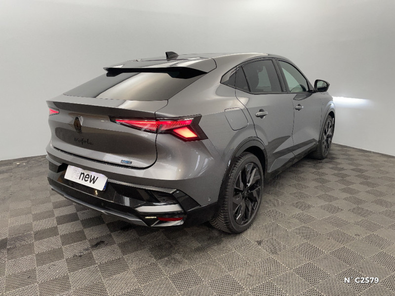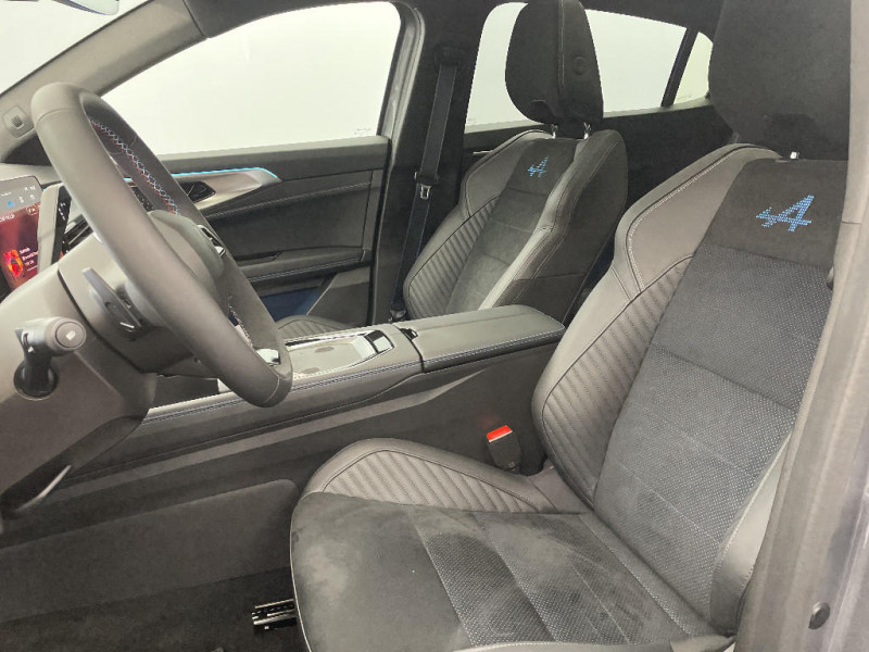 Ciel de toit gris anthracite / Sellerie mixte Alcantara avec surpiqûres bleues et logo Alpine lumineux / Sièges avec système ISOFIX / Système de reconnaissance du conducteur / Système Multimédia openR link 12" : navigation & services Google intégrés, audio Arkamys Auditorium / Tableau de bord full numérique 12,3'' / Lumière d'ambiance personnalisable / Maintenance connectée, incluse pendant 8 ans / Miroir de surveillance enfants / Mise à jour système (via firmware over the air FOTA), inclus pendant 5 ans / Multi-sense / Navigation Google Maps / Notice d'utilisation digitale embarqué dans le système multimédia du véhicule / Pack connected driving, inclus pendant 5 ans / Pack contrôle à distance (via l¿application My Renault), inclus pendant 5 ans / Pack Design esprit Alpine extérieur / Pack Design esprit Alpine intérieur / Plaque de protection de coffre en aluminium / Pré-équipement alarme / Rétroviseur intérieur électrochrome sans cadre / 4Control advanced / Aide au parking AV/AR et latéral / Airbags latéraux, rideaux et central AV / Alerte de distance de sécurité / Alerte franchissement de ligne et assistant maintien dans la voie / Alerte sortie sécurisée des occupants / Avertisseur d'angle mort et prévention sortie de voie en cas de dépassement / Avertisseur de sortie de stationnement en marche AR avec freinage d'urgence automatique / Boîte de vitesse hybride multimode 6 rapports / Carte Renault accès et démarrage mains libres / Clignotants AR dynamiques / Commutation automatique des feux de route/croisement / Console centrale avec repose main coulissant / Console de toit avec porte-lunettes / Contrôle de la traction (TCS) / Feux AV adaptive LED vision / Hayon motorisé / Jantes alliage 20'' castellet noires diamantées / Kit de gonflage
