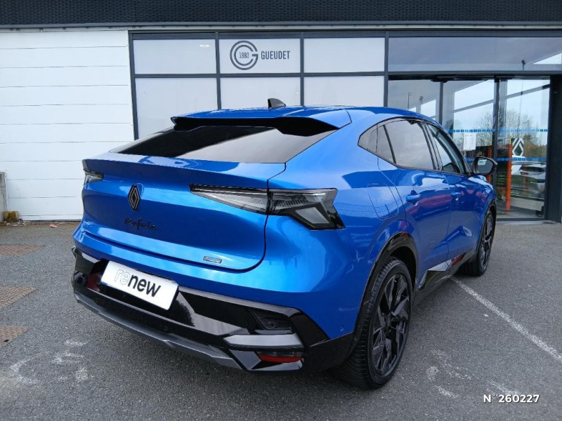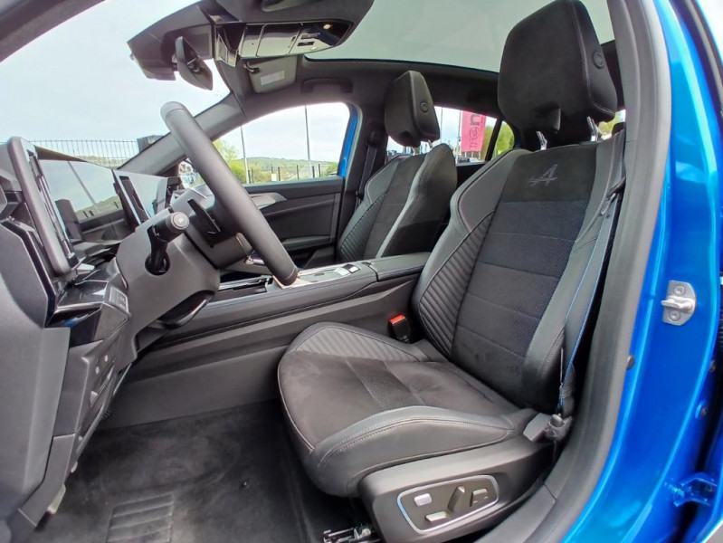 Alerte de distance de sécurité / Miroir de surveillance enfants / Lumière d'ambiance personnalisable / Rétroviseur intérieur électrochrome sans cadre / Ciel de toit gris anthracite / Clignotants AR dynamiques / Pack Design esprit Alpine extérieur / Tableau de bord full numérique 12,3'' / Alerte franchissement de ligne et assistant maintien dans la voie / Avertisseur de sortie de stationnement en marche AR avec freinage d'urgence automatique / Pré-équipement alarme / Hayon motorisé / Alerte sortie sécurisée des occupants / Airbags latéraux, rideaux et central AV / Sellerie mixte Alcantara avec surpiqures bleues et logo Alpine lumineux / Plaque de protection de coffre en aluminium / Feux AV adaptive LED vision / Jantes alliage 20'' castellet noires diamantées / 2 prises USB à l'AV et à l'AR / Système Multimédia openR link 12" : navigation & services Google intégrés, audio Arkamys Auditorium / Contrôle de la traction (TCS) / Boîte de vitesse automatique 4 rapports / Pack contrôle à distance (via l?application My Renault), inclus pendant 5 ans / Mise à jour système (via firmware over the air FOTA), inclus pendant 5 ans / Maintenance connectée, incluse pendant 8 ans / Pack connected driving, inclus pendant 5 ans / Console de toit avec porte-lunettes / Pack Design esprit Alpine intérieur / Navigation Google Maps / Kit de gonflage / Sièges avec système ISOFIX / Avertisseur d?angle mort et prévention sortie de voie en cas de dépassement / Notice d?utilisation digitale embarqué dans le système multimédia du véhicule / 4Control advanced / Appuie-têtes AV grand confort / Console centrale avec repose main coulissant / Aide au parking AV/AR et latéral / Commutation automatique des feux de route/croisement / Multi-sense / Carte Renault accès et démarrage mains libres