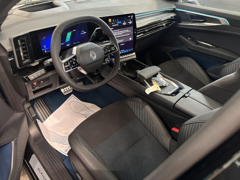 Easy park assist et aides au parking AV, AR et latérale / Feux AV adaptive LED vision / Hayon motorisé mains libres / Jantes alliage diamantées noire 21" chicane avec vernis fumé gris / Kit de gonflage / LED matrix vision / Lumière d¿accueil au seuil avec projection logo / Lumière d'ambiance personnalisable / Maintenance connectée, incluse pendant 8 ans / Miroir de surveillance enfants / Multi-sense / Navigation Google Maps / Notice d'utilisation digitale embarqué dans le système multimédia du véhicule / Pack connected driving, inclus pendant 5 ans / Pack contrôle à distance (via l¿application My Renault), inclus pendant 5 ans / Plaque de protection de coffre en aluminium / Pré-équipement alarme / Rétroviseur intérieur électrochrome sans cadre / Rétroviseurs extérieurs électriques à mémoire, dégivrants, rabattables automatiquement / Sellerie mixte Alcantara avec surpiqûres bleues et logo Alpine lumineux / Sièges AV électriques à mémoire avec réglage et massage lombaire conducteur / Sièges avec système ISOFIX / Suspension pilotée avec caméra prédictive / Système de reconnaissance du conducteur / Système Multimédia openR link 12" : navigation & services Google intégrés, audio Arkamys Auditorium / Tableau de bord full numérique 12,3'' / Volant chauffant / 4Control advanced / Mise à jour système (via firmware over the air FOTA), inclus pendant 5 ans / Accoudoir ingenius armrest / Active driver assist : régulateur de vitesse adaptatif intelligent + centrage dans la voie / Airbags latéraux, rideaux et central AV / Alerte de distance de sécurité / Alerte franchissement de ligne et assistant maintien dans la voie / Alerte sortie sécurisée des occupants / Appuie-têtes AV grand confort / Assistant éco-conduite prédictif / Avertisseur d'angle mort et prévention sortie de voie en cas de dépassement / Avertisseur de sortie de stationnement en marche AR avec freinage d'urgence automatique / Boîte de vitesse hybride multimode 6 rapports / Câble de recharge domestique (mode 2) / Caméra 3D vision 360° / Carte Renault accès et démarrage mains libres / Ciel de toit gris anthracite / Clignotants AR dynamiques / Commutation automatique des feux de route/croisement / Console centrale avec repose main coulissant / Console de toit avec porte-lunettes / Contrôle de la traction (TCS)