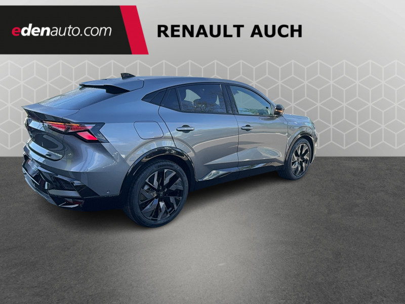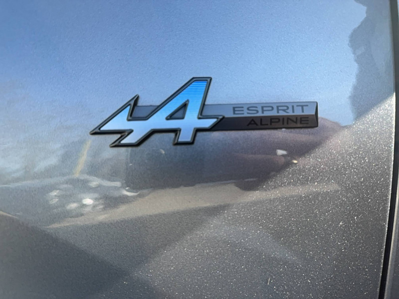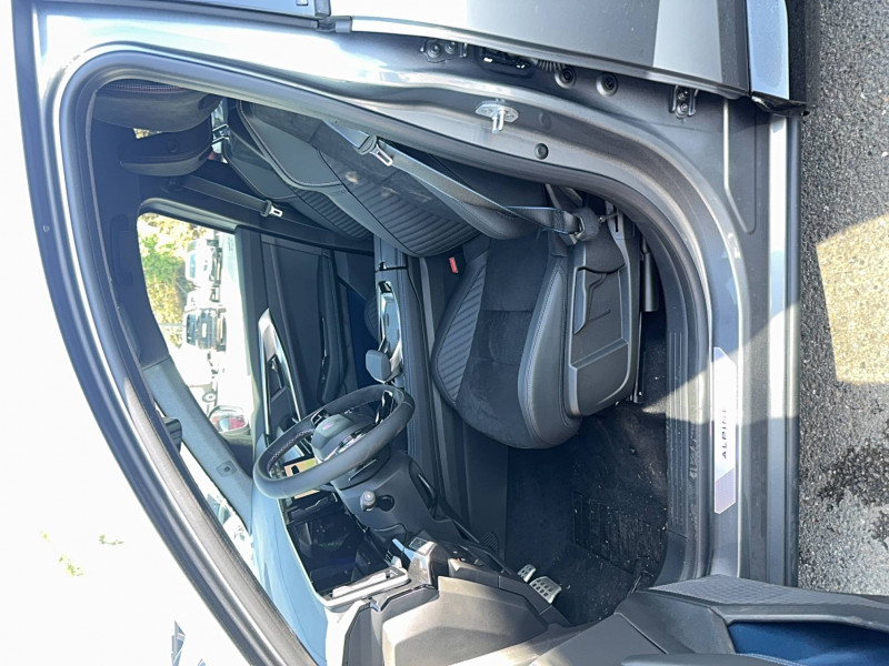4Control advanced / Aide au parking AV/AR et latéral / Airbags latéraux, rideaux et central AV / Alerte de distance de sécurité / Alerte franchissement de ligne et assistant maintien dans la voie / Alerte sortie sécurisée des occupants / Avertisseur d'angle mort et prévention sortie de voie en cas de dépassement / Avertisseur de sortie de stationnement en marche AR avec freinage d'urgence automatique / Boîte de vitesse hybride multimode 6 rapports / Carte Renault accès et démarrage mains libres / Ciel de toit gris anthracite / Clignotants AR dynamiques / Commutation automatique des feux de route/croisement / Console centrale avec repose main coulissant / Console de toit avec porte-lunettes / Contrôle de la traction (TCS) / Feux AV adaptive LED vision / Hayon motorisé / Jantes alliage 20'' castellet noires diamantées / Kit de gonflage / Lumière d'ambiance personnalisable / Maintenance connectée, incluse pendant 8 ans / Miroir de surveillance enfants / Mise à jour système (via firmware over the air FOTA), inclus pendant 5 ans / Multi-sense / Navigation Google Maps / Notice d'utilisation digitale embarqué dans le système multimédia du véhicule / Pack connected driving, inclus pendant 5 ans / Pack contrôle à distance (via l'application My Renault), inclus pendant 5 ans / Pack Design esprit Alpine extérieur / Pack Design esprit Alpine intérieur / Plaque de protection de coffre en aluminium / Pré-équipement alarme / Rétroviseur intérieur électrochrome sans cadre / Sellerie mixte Alcantara avec surpiqûres bleues et logo Alpine lumineux / Sièges avec système ISOFIX / Système de reconnaissance du conducteur / Système Multimédia openR link 12" : navigation & services Google intégrés, audio Arkamys Auditorium / Tableau de bord full numérique 12,3''