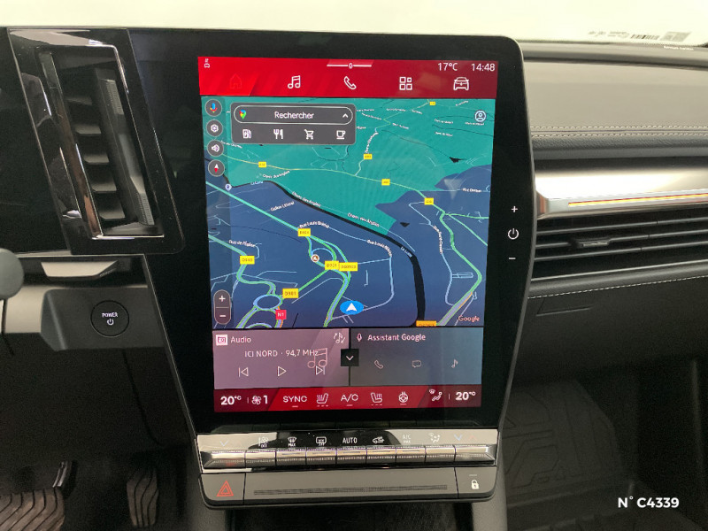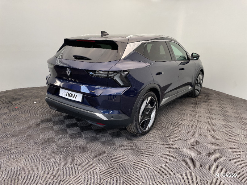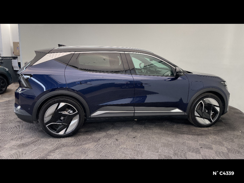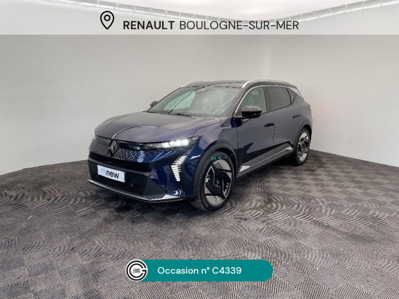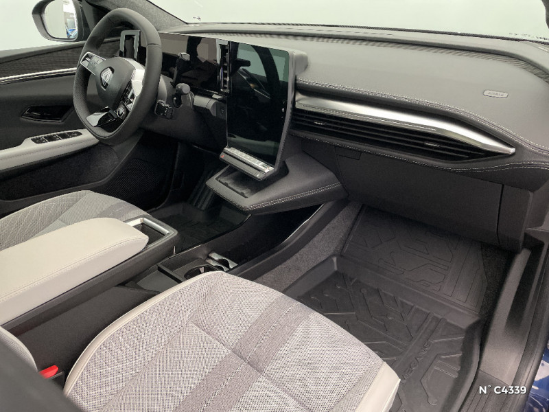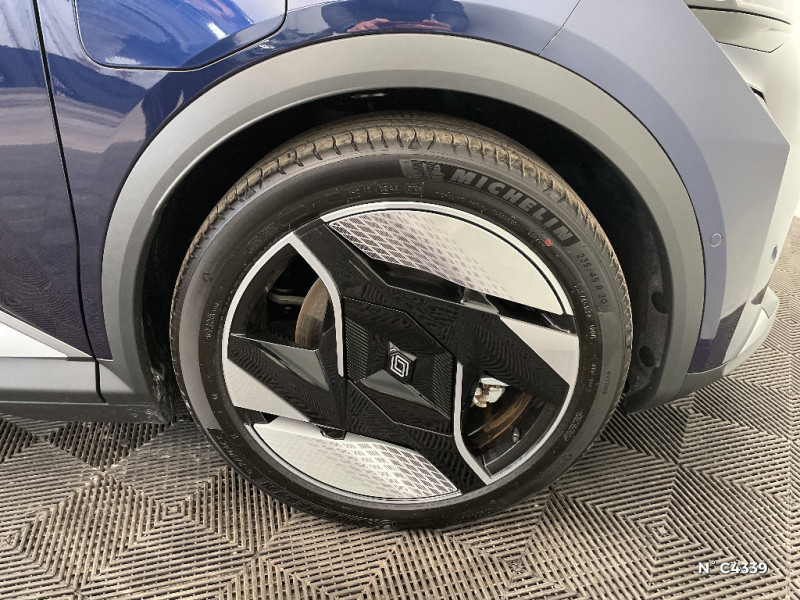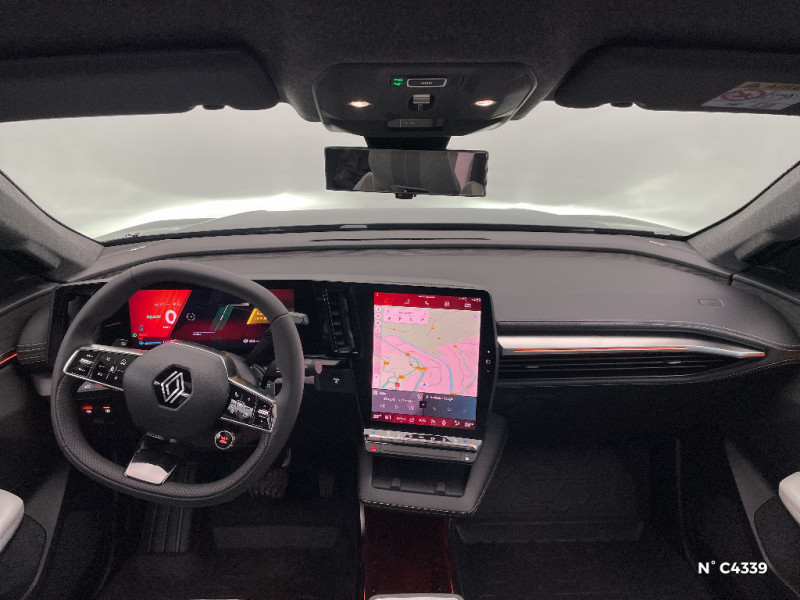 Sièges AV chauffants et volant chauffant / Sièges AV électriques à mémoire avec réglage lombaire + siège conducteur massant / Sièges avec système ISOFIX + Tether / Signature lumineuse AV / Système audio premium Harman Kardon / Système de reconnaissance du conducteur / Système d'optimisation de la température batterie (charge rapide DC) / Système Multimédia openR link 12" : Google intégré, préconditionnement batterie pour charge DC, audio premium Harman Kardon / Freinage automatique d'urgence en ville pour deux roues et piétons / Gestion automatique des feux diurnes et des essuie-glaces / Hayon motorisé / Jantes alliage diamantées en noir brillant 20" oracle / Kit de gonflage / Maintenance connectée, incluse pendant 8 ans / Mise à jour système (via firmware over the air FOTA), inclus pendant 5 ans / Multi-sense / Notice d'utilisation digitale embarqué dans le système multimédia du véhicule / Antenne Requin / Avertisseur d'angle mort et détection AR avec correction trajectoire d'urgence / Avertisseur de distance de sécurité / Avertisseur de sortie de stationnement en marche AR avec freinage d'urgence automatique / Boîte de vitesse Automate à fonction continue / Bouclier AV sport avec lame F1 / Câble pour borne de recharge (mode 3 type 2 triphasé, 5m) / Caméra 3D vision 360° / Carte Renault accès et démarrage mains libres / Changement d'intensité du freinage régénératif par palettes / Chargeur AC 11 kW triphasé / Active driver assist : régulateur de vitesse adaptatif contextuel + centrage dans la voie / Active driver assist régulateur de vitesse adaptatif intelligent + centrage dans la voie / Adaptateur power to object (charge bidirectionnelle V2L) / Airbags latéraux, milieu AV et rideaux / Alerte détection de fatigue / Alerte d'oubli de ceinture de sécurité / Alerte et prévention sortie de voie (dont urgence) / Alerte sortie sécurisée des occupants / Tableau de bord full numérique / Toit en verre fixe panoramique opacifiant solarbay / Volant chauffant / Volant en textile refined biosourcé / 2 feux de recul / Pack contrôle à distance (via l'application My Renault), inclus pendant 5 ans / Parking mains-libres (inclus aides au parking AV, AR et latérale) / Planche de bord en textile refined biosourcé noir titane et inserts décoratifs en Alcantara / Pompe à chaleur / Prédisposition éthylotest / Projecteurs full LED directionnels avec fonction antibrouillard / Réplication smartphone / Rétroviseur intérieur avec fonction caméra numérique / Sellerie en textile refined biosourcé noir titane et surpiqûres jaunes / Option Iconic (sièges AV et volant chauffant, siège conducteur à réglage électrique et massant, sellerie spécifique claire, solarbay, jantes spécifiques 20", caméra 360 et full auto-park, radars AV, AR et latéraux, rétroviseur intérieur avec fonction caméra numérique, active driver assist, système audio premium Harman Kardon) / Clignotants défilants / Commutation automatique des feux de route/croisement / Console de rangement haute avec accoudoir central coulissant / Contrôle de la traction (TCS)
