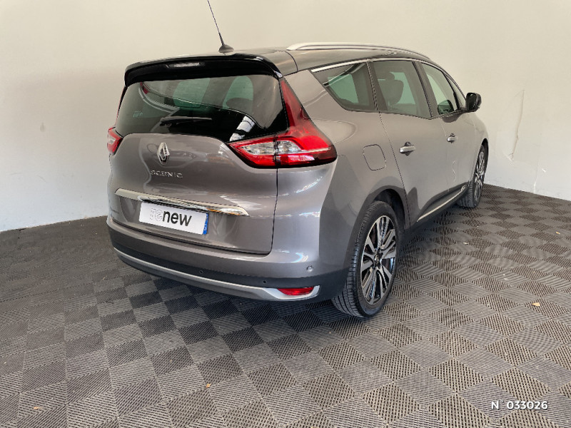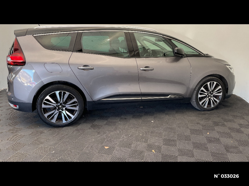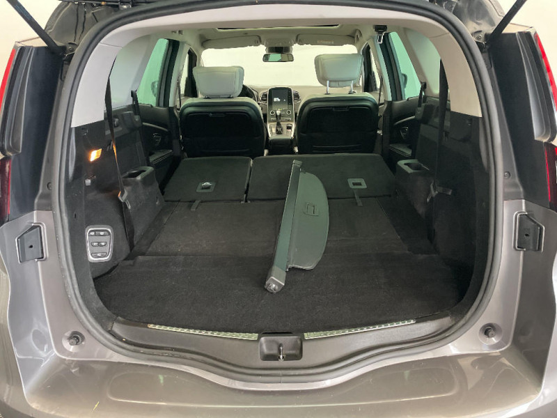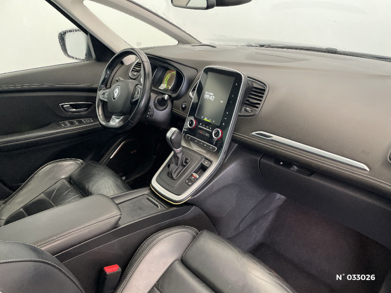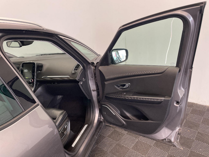 Alerte Distance Sécurité / Commutation automatique des feux de route/croisement / Projecteurs AV full LED Pure Vision / Feux de jour à guide de lumière LED et effet 3D / Easy Park Assist / Appuie-têtes AV et AR grand confort / Modularité One-Touch / Teinte bi-ton / Alerte détection de fatigue / Contrôle dynamique de trajectoire ESC avec aide au démarrage en côte / Système de fixations ISOFIX sur le siège passager AV et aux 2 places latérales du rang 2 / Sièges électriques chauffants et massants / R-LINK 2, système multimédia connecté avec cartographie Europe / Aide au freinage actif d'urgence avec détection piétons / Console centrale coulissante Easy Life avec accoudoir / Coques de rétroviseurs ton toit / Android Auto & Apple CarPlay / Sellerie cuir Nappa pleine fleur Gris Camaïeu / Harmonie Noir Titane / Jantes alliage 20'' Initiale Paris Noir Diamanté / Bose Sound System (inclus radio DAB) / Barres de toit longitudinales aspect chrome / Kit de gonflage et de réparation / Rétroviseur intérieur électrochrome / Peinture opaque / Carte Renault d'accés et démarrage mains libres / Renault Multi-Sense (choix de modes de conduite)