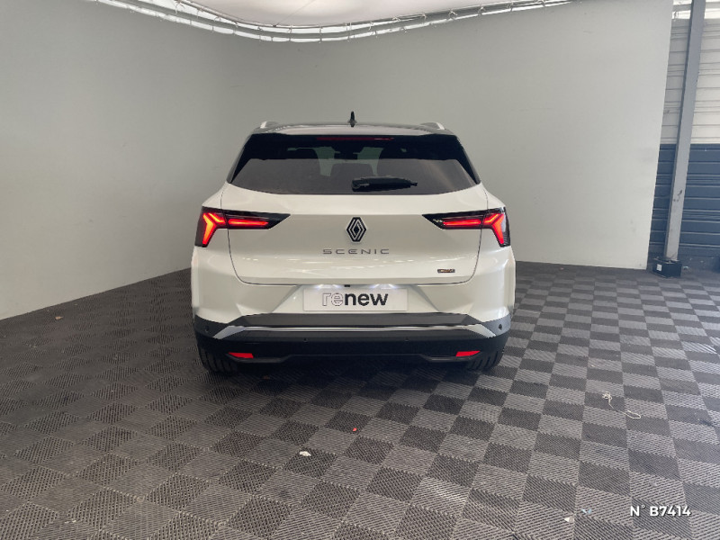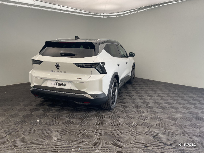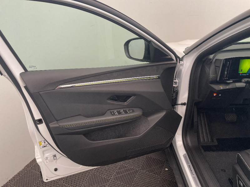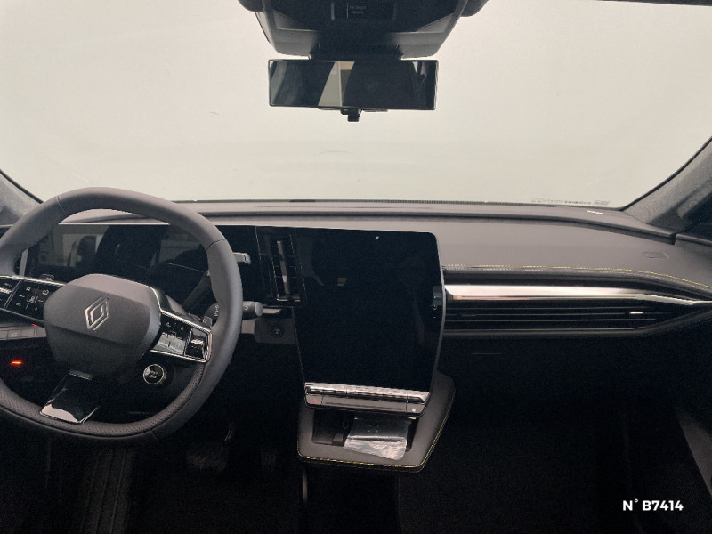 Jantes alliage diamantées en noir brillant 20" oracle / Kit de gonflage / Multi-sense / Option Iconic (sièges AV et volant chauffant, siège conducteur à réglage électrique et massant, sellerie spécifique claire, solarbay, jantes spécifiques 20", caméra 360 et full auto-park, radars AV, AR et latéraux, rétroviseur intérieur avec fonction caméra numérique, active driver assist, système audio premium Harman Kardon) / Parking mains-libres (inclus aides au parking AV, AR et latérale) / Planche de bord en textile refined biosourcé noir titane et inserts décoratifs en Alcantara / Pompe à chaleur / Prédisposition éthylotest / Projecteurs full LED directionnels avec fonction antibrouillard / Réplication smartphone / Rétroviseur intérieur avec fonction caméra numérique / Sellerie en textile refined biosourcé noir titane et surpiqûres jaunes / Sièges AV chauffants et volant chauffant / Sièges AV électriques avec réglage lombaire + siège conducteur massant / Sièges avec système ISOFIX + Tether / Signature lumineuse AV / Système audio premium Harman Kardon / Système de reconnaissance du conducteur / Système d'optimisation de la température batterie (charge rapide DC) / Système Multimédia openR link 12" : Google intégré, préconditionnement batterie pour charge DC, audio premium Harman Kardon / Tableau de bord full numérique / Toit en verre fixe panoramique opacifiant solarbay / Volant chauffant / Volant en textile refined biosourcé / 2 feux de recul / Airbags latéraux, milieu AV et rideaux / Alerte détection de fatigue / Alerte d'oubli de ceinture de sécurité / Alerte et prévention sortie de voie (dont urgence) / Alerte sortie sécurisée des occupants / Avertisseur d'angle mort et détection AR avec correction trajectoire d'urgence / Avertisseur de distance de sécurité / Avertisseur de sortie de stationnement en marche AR avec freinage d'urgence automatique / Boîte de vitesse Automate à fonction continue / Bouclier AV sport avec lame F1 / Câble pour borne de recharge (mode 3 type 2 triphasé, 5m) / Caméra 3D vision 360° / Carte Renault accès et démarrage mains libres / Changement d'intensité du freinage régénératif par palettes / Chargeur AC 11 kW triphasé / Clignotants défilants / Antenne Requin / Commutation automatique des feux de route/croisement / Console de rangement haute avec accoudoir central coulissant / Contrôle de la traction (TCS) / Active driver assist régulateur de vitesse adaptatif intelligent + centrage dans la voie / Adaptateur power to object (charge bidirectionnelle V2L) / Active driver assist : régulateur de vitesse adaptatif contextuel + centrage dans la voie / Freinage automatique d'urgence en ville pour deux roues et piétons / Gestion automatique des feux diurnes et des essuie-glaces / Hayon motorisé