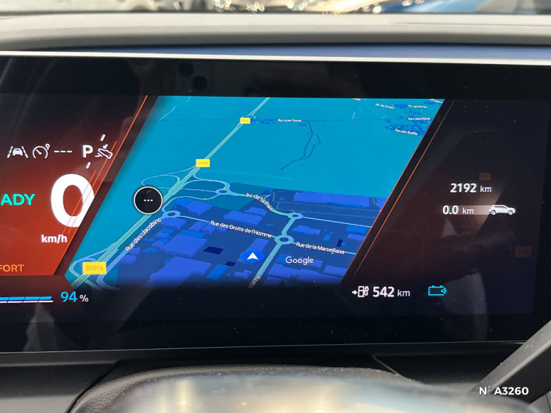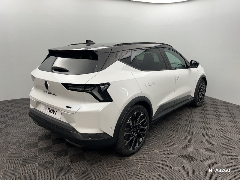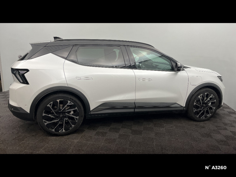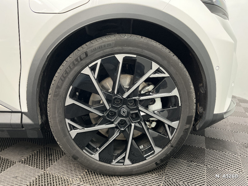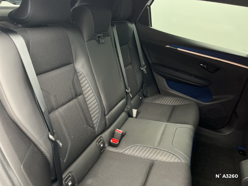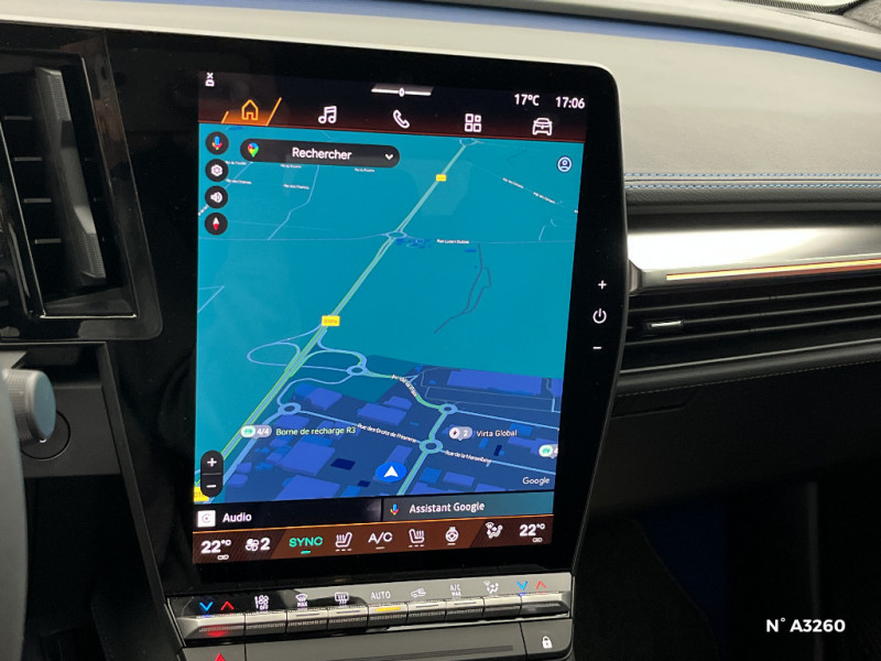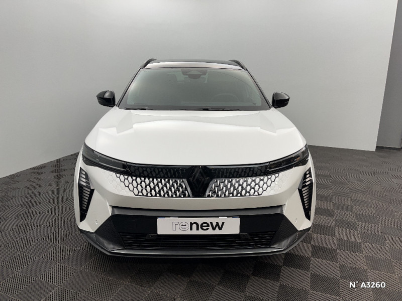 Multi-sense / Option esprit Alpine (sièges AV et volant chauffant, décors esprit Alpine, jantes spécifiques 20') / Pavillon et montants / Pompe à chaleur / Prédisposition éthylotest / Projecteurs full LED directionnels avec fonction antibrouillard / Réplication smartphone / Rétroviseur jour/nuit automatique / Sellerie maille embossée recyclée / textile refined matelassé noir titane et surpiqûres bleu Alpine / Sièges AV chauffants et volant chauffant / Sièges AV électriques avec réglage lombaire + siège conducteur massant / Sièges avec système ISOFIX + Tether / Sièges typés sport, volant Alpine, planche de bord spécifique, pièces décor bleues / Signature lumineuse AV / Système de reconnaissance du conducteur / Système d'optimisation de la température batterie (charge rapide DC) / Tapis spécifique bleu / Volant chauffant / Volant en textile refined biosourcé / 2 feux de recul / Système Multimédia openR link 12" : Google intégré, préconditionnement batterie pour charge DC, audio Arkamys Auditorium / Tableau de bord full numérique / Alerte et prévention sortie de voie (dont urgence) / Antenne Requin / Avertisseur de distance de sécurité / Boîte de vitesse Automate à fonction continue / Bouclier AV sport avec lame F1 / Câble pour borne de recharge (mode 3 type 2 triphasé, 5m) / Caméra de recul digitale haute définition / Carte Renault accès et démarrage mains libres / Changement d'intensité du freinage régénératif par palettes / Chargeur AC 11 kW triphasé / Clignotants défilants / Commutation automatique des feux de route/croisement / Console de rangement haute avec accoudoir central coulissant / Contrôle de la traction (TCS) / Airbags latéraux, milieu AV et rideaux / Design esprit Alpine extérieur / Alerte détection de fatigue / Alerte d'oubli de ceinture de sécurité / Freinage automatique d'urgence en ville pour deux roues et piétons / Gestion automatique des feux diurnes et des essuie-glaces / Hayon motorisé / Jantes alliage diamantées en noir verni fumé 20" speedway / Kit de gonflage