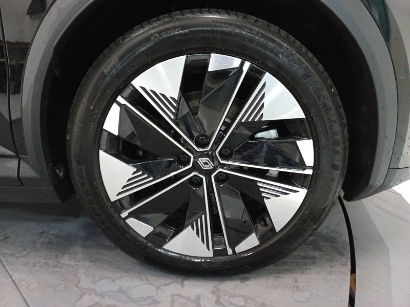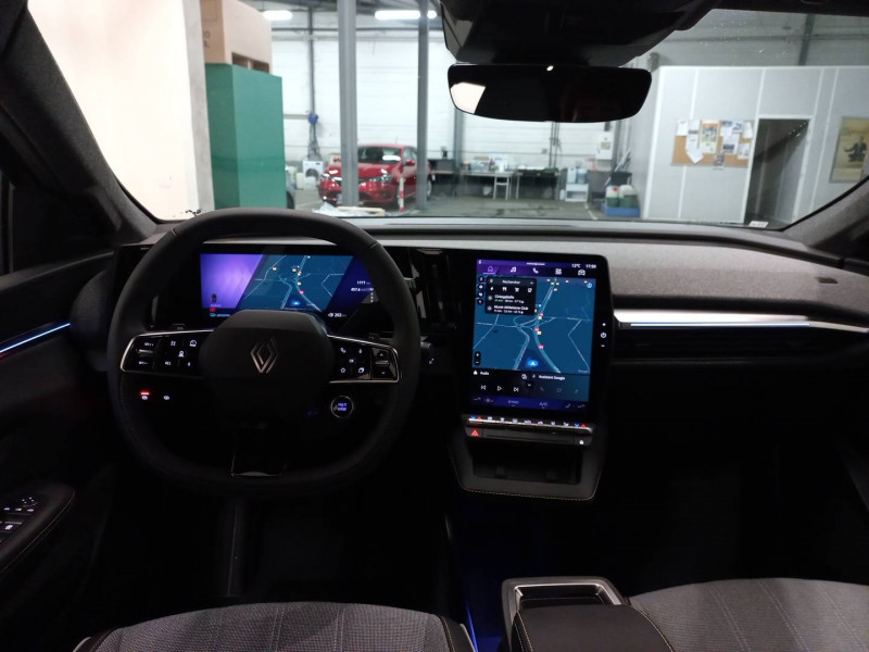 2 feux de recul / Airbags latéraux, milieu AV et rideaux / Alerte détection de fatigue / Alerte d'oubli de ceinture de sécurité / Alerte et prévention sortie de voie (dont urgence) / Antenne Requin / Avertisseur de distance de sécurité / Boîte de vitesse Automate à fonction continue / Bouclier AV sport avec lame F1 / Câble pour borne de recharge (mode 3 type 2 triphasé, 5m) / Caméra de recul digitale haute définition / Carte Renault accès et démarrage mains libres / Changement d'intensité du freinage régénératif par palettes / Chargeur AC 11 kW triphasé / Clignotants défilants / Commutation automatique des feux de route/croisement / Console de rangement haute avec accoudoir central coulissant / Contrôle de la traction (TCS) / Freinage automatique d'urgence en ville pour deux roues et piétons / Gestion automatique des feux diurnes et des essuie-glaces / Hayon motorisé / Jantes alliage diamantées en noir brillant 19" streamline / Kit de gonflage / Maintenance connectée, incluse pendant 8 ans / Mise à jour système (via firmware over the air FOTA), inclus pendant 5 ans / Multi-sense / Notice d'utilisation digitale embarqué dans le système multimédia du véhicule / Pack contrôle à distance (via l'application My Renault), inclus pendant 5 ans / Pavillon et montants / Pompe à chaleur / Prédisposition éthylotest / Projecteurs full LED directionnels avec fonction antibrouillard / Réplication smartphone / Rétroviseur jour/nuit automatique / Sellerie tissu recyclé gris chiné/textile refined noir titane et surpiqûres jaunes / Sièges avec système ISOFIX + Tether / Sièges AV manuels avec réglable en hauteur conducteur / Signature lumineuse AV / Système d'optimisation de la température batterie (charge rapide DC) / Système Multimédia openR link 12" : Google intégré, préconditionnement batterie pour charge DC, audio Arkamys Auditorium / Tableau de bord full numérique / Volant en textile refined biosourcé