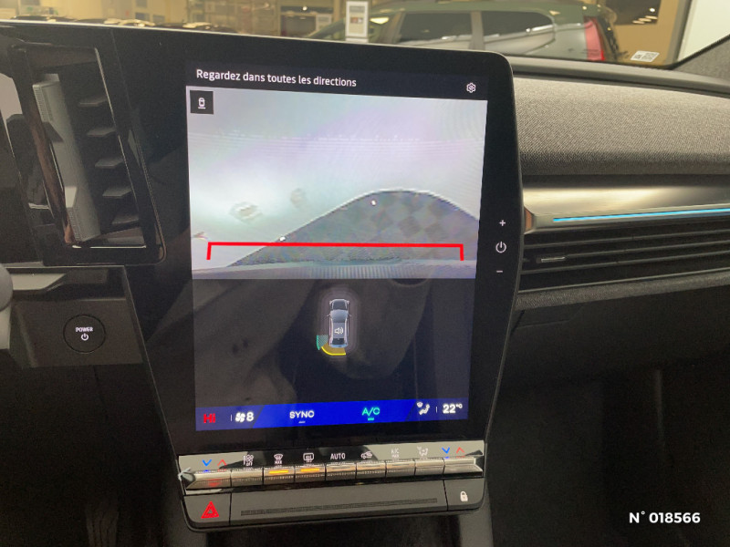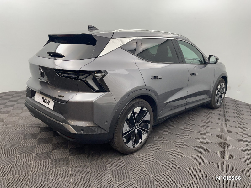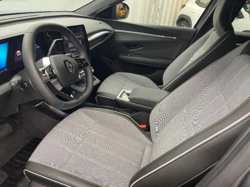 Freinage automatique d'urgence en ville pour deux roues et piétons / Sièges AV manuels avec réglable en hauteur conducteur / Jantes alliage diamantées 19" streamline / Pavillon et montants / 2 feux de recul / Prise rang 1+2+3 / Carte Renault accès et démarrage mains libres / Purificateur d'air / Antenne Requin / Bouclier AV sport avec lame F1 / Projecteurs full LED directionnels avec fonction antibrouillard / Signature lumineuse AV / Airbags latéraux, milieu AV et rideaux / Alerte d'oubli de ceinture de sécurité / Kit de gonflage / Pompe à chaleur / Câble pour borne de recharge (mode 3 type 2 monophasé, 5m) / Hayon motorisé / Alerte et prévention sortie de voie (dont urgence) / Système d'optimisation de la température batterie (charge rapide DC) / Gestion automatique des feux diurnes et des essuie-glaces / Volant enduit grainé / Réplication smartphone / Clignotants défilants / Commutation automatique des feux de route/croisement / Rétroviseur jour/nuit automatique / Multi-sense / Tableau de bord full numérique / Changement d'intensité du freinage régénératif par palettes / Sellerie tissu recyclé gris chiné/textile enduit grainé recyclé noir titane/surpiqures jaunes / Sièges avec système ISOFIX + Tether / Avertisseur de distance de sécurité AV / Console de rangement haute avec accoudoir central coulissant / Système Multimédia openR link 12" : Google intégré, préconditionnement batterie pour charge DC, audio Arkamys Auditorium / Contrôle de la traction (TCS) / Boîte de vitesse Automate à fonction continue / Jantes alliage diamantées en noir brillant 19" streamline / Sellerie tissu recyclé gris chiné/textile refined noir titane et surpiqures jaunes / Volant en textile refined biosourcé / Caméra de recul digitale haute définition / Chargeur AC 11 kW triphasé / Câble pour borne de recharge (mode 3 type 2 triphasé, 5m) / Alerte détection de fatigue / Charge AC 7kW + DC 130 kW (autonomie confort) ou DC 150 kW / Prédisposition éthylotest