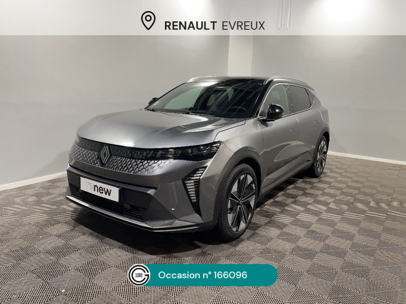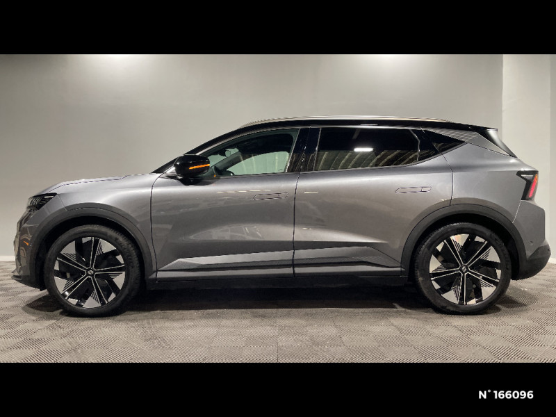 Rétroviseur jour/nuit automatique / Multi-sense / Tableau de bord full numérique / Carte Renault accès et démarrage mains libres / Changement d'intensité du freinage régénératif par palettes / Sellerie tissu recyclé gris chiné/textile enduit grainé recyclé noir titane/surpiqures jaunes / Sièges avec système ISOFIX + Tether / Avertisseur de distance de sécurité AV / Console de rangement haute avec accoudoir central coulissant / Alerte détection de fatigue / Charge AC 7kW + DC 130 kW (autonomie confort) ou DC 150 kW / Prédisposition éthylotest / Freinage automatique d'urgence en ville pour deux roues et piétons / Sièges AV manuels avec réglable en hauteur conducteur / Jantes alliage diamantées 19" streamline / Pavillon et montants / 2 feux de recul / Prise rang 1+2+3 / Système Multimédia openR link 12" : Google intégré, préconditionnement batterie pour charge DC, audio Arkamys Auditorium / Contrôle de la traction (TCS) / Boîte de vitesse Automate à fonction continue / Jantes alliage diamantées en noir brillant 19" streamline / Sellerie tissu recyclé gris chiné/textile refined noir titane et surpiqures jaunes / Volant en textile refined biosourcé / Caméra de recul digitale haute définition / Chargeur AC 11 kW triphasé / Câble pour borne de recharge (mode 3 type 2 triphasé, 5m) / Airbags latéraux, milieu AV et rideaux / Alerte d'oubli de ceinture de sécurité / Kit de gonflage / Pompe à chaleur / Câble pour borne de recharge (mode 3 type 2 monophasé, 5m) / Hayon motorisé / Alerte et prévention sortie de voie (dont urgence) / Système d'optimisation de la température batterie (charge rapide DC) / Gestion automatique des feux diurnes et des essuie-glaces / Volant enduit grainé / Purificateur d'air / Antenne Requin / Bouclier AV sport avec lame F1 / Projecteurs full LED directionnels avec fonction antibrouillard / Signature lumineuse AV / Réplication smartphone / Clignotants défilants / Commutation automatique des feux de route/croisement