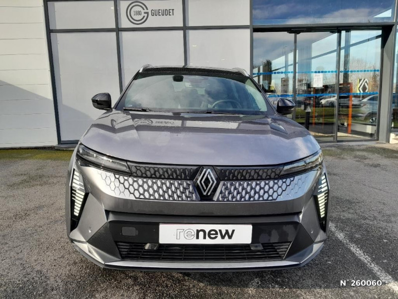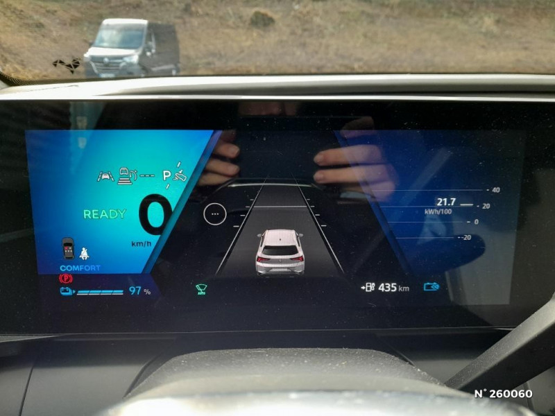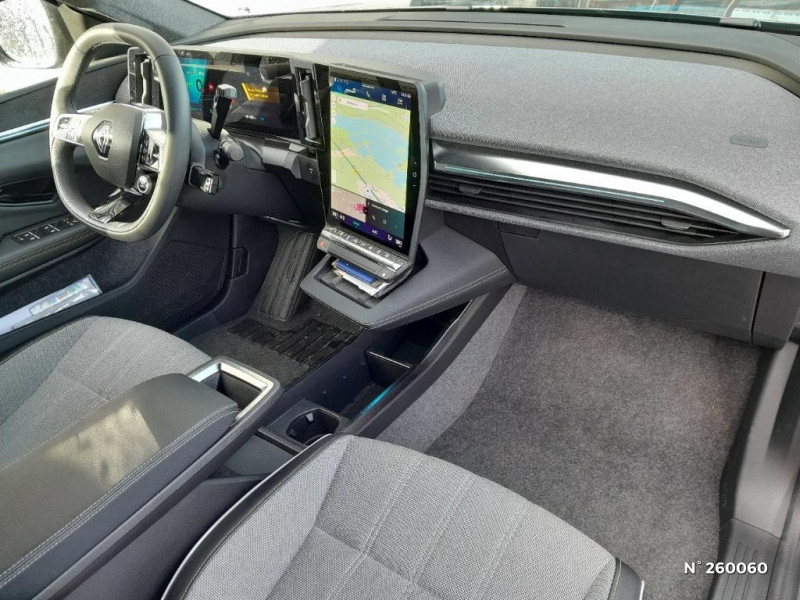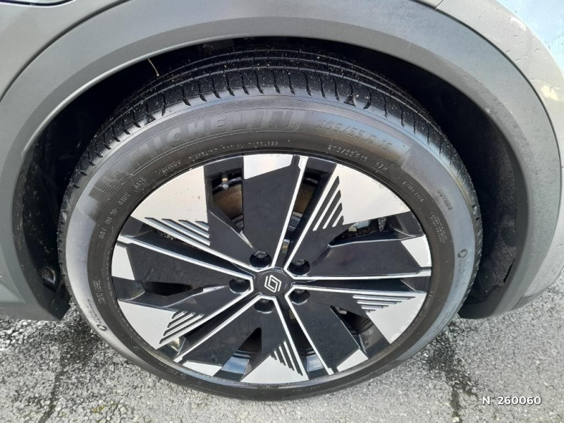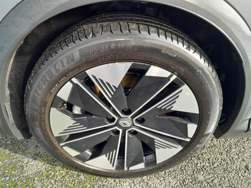 Kit de gonflage / Pompe à chaleur / Câble pour borne de recharge (mode 3 type 2 monophasé, 5m) / Freinage automatique d'urgence en ville pour deux roues et piétons / Sièges AV manuels avec réglable en hauteur conducteur / Jantes alliage diamantées 19" streamline / Pavillon et montants / 2 feux de recul / Prise rang 1+2+3 / Réplication smartphone / Clignotants défilants / Commutation automatique des feux de route/croisement / Rétroviseur jour/nuit automatique / Multi-sense / Tableau de bord full numérique / Système Multimédia openR link 12" : Google intégré, préconditionnement batterie pour charge DC, audio Arkamys Auditorium / Contrôle de la traction (TCS) / Boîte de vitesse Automate à fonction continue / Jantes alliage diamantées en noir brillant 19" streamline / Sellerie tissu recyclé gris chiné/textile refined noir titane et surpiqures jaunes / Volant en textile refined biosourcé / Caméra de recul digitale haute définition / Chargeur AC 11 kW triphasé / Câble pour borne de recharge (mode 3 type 2 triphasé, 5m) / Alerte et prévention sortie de voie (dont urgence) / Système d'optimisation de la température batterie (charge rapide DC) / Gestion automatique des feux diurnes et des essuie-glaces / Volant enduit grainé / Changement d'intensité du freinage régénératif par palettes / Sellerie tissu recyclé gris chiné/textile enduit grainé recyclé noir titane/surpiqures jaunes / Sièges avec système ISOFIX + Tether / Avertisseur de distance de sécurité AV / Console de rangement haute avec accoudoir central coulissant / Alerte détection de fatigue / Charge AC 7kW + DC 130 kW (autonomie confort) ou DC 150 kW / Prédisposition éthylotest / Hayon motorisé / Carte Renault accès et démarrage mains libres / Purificateur d'air / Antenne Requin / Bouclier AV sport avec lame F1 / Projecteurs full LED directionnels avec fonction antibrouillard / Signature lumineuse AV / Airbags latéraux, milieu AV et rideaux / Alerte d'oubli de ceinture de sécurité