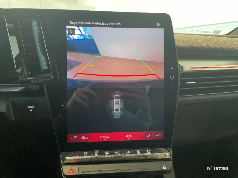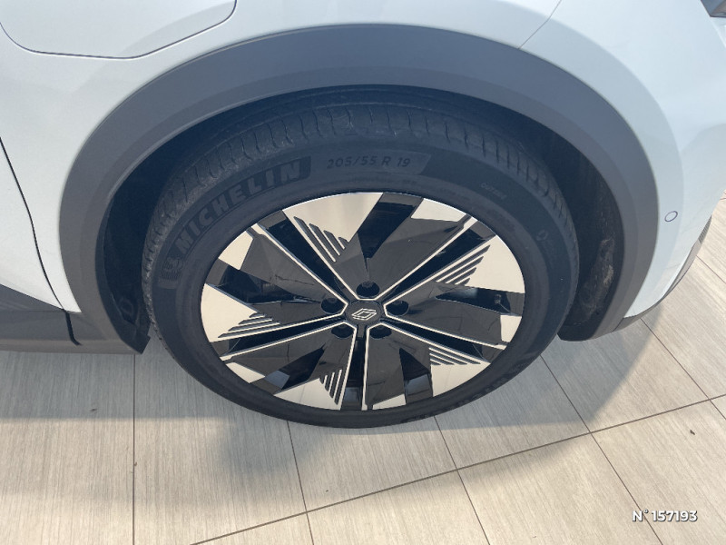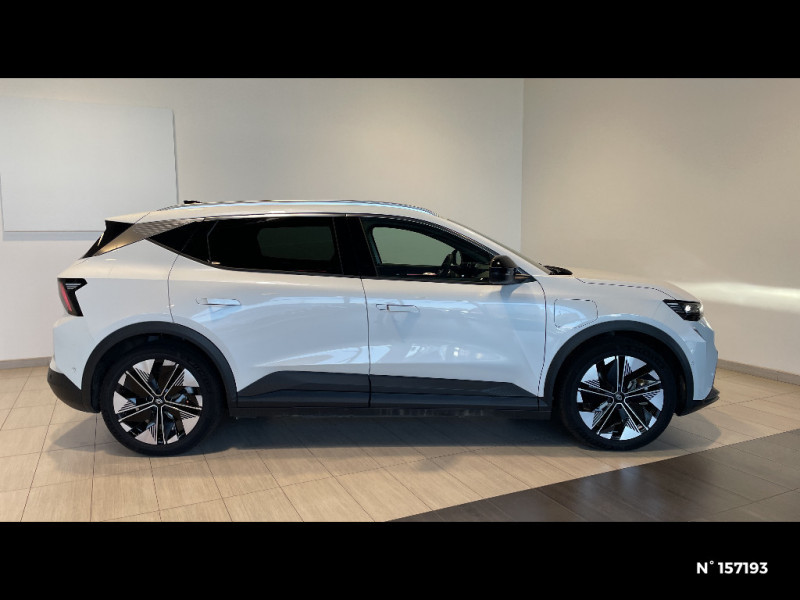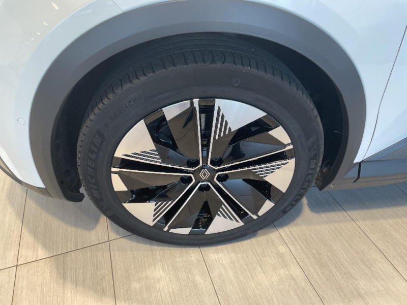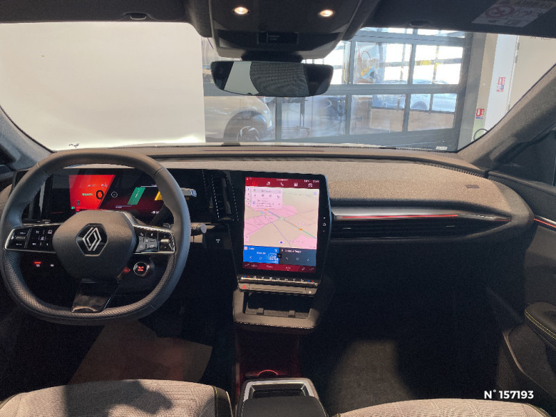 Alerte détection de fatigue / Charge AC 7kW + DC 130 kW (autonomie confort) ou DC 150 kW / Prédisposition éthylotest / Freinage automatique d'urgence en ville pour deux roues et piétons / Sièges AV manuels avec réglable en hauteur conducteur / Gestion automatique des feux diurnes et des essuie-glaces / Volant enduit grainé / Changement d'intensité du freinage régénératif par palettes / Pompe à chaleur / Câble pour borne de recharge (mode 3 type 2 monophasé, 5m) / Hayon motorisé / Réplication smartphone / Clignotants défilants / Commutation automatique des feux de route/croisement / Rétroviseur jour/nuit automatique / Multi-sense / Tableau de bord full numérique / Carte Renault accès et démarrage mains libres / Alerte et prévention sortie de voie (dont urgence) / Système d'optimisation de la température batterie (charge rapide DC) / Sellerie tissu recyclé gris chiné/textile enduit grainé recyclé noir titane/surpiqures jaunes / Sièges avec système ISOFIX + Tether / Avertisseur de distance de sécurité AV / Console de rangement haute avec accoudoir central coulissant / Jantes alliage diamantées 19" streamline / Pavillon et montants / 2 feux de recul / Prise rang 1+2+3 / Système Multimédia openR link 12" : Google intégré, préconditionnement batterie pour charge DC, audio Arkamys Auditorium / Contrôle de la traction (TCS) / Boîte de vitesse Automate à fonction continue / Jantes alliage diamantées en noir brillant 19" streamline / Sellerie tissu recyclé gris chiné/textile refined noir titane et surpiqures jaunes / Volant en textile refined biosourcé / Caméra de recul digitale haute définition / Chargeur AC 11 kW triphasé / Câble pour borne de recharge (mode 3 type 2 triphasé, 5m) / Purificateur d'air / Antenne Requin / Bouclier AV sport avec lame F1 / Projecteurs full LED directionnels avec fonction antibrouillard / Signature lumineuse AV / Airbags latéraux, milieu AV et rideaux / Alerte d'oubli de ceinture de sécurité / Kit de gonflage