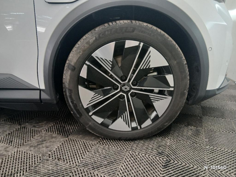 Chargeur AC 11 kW triphasé / Câble pour borne de recharge (mode 3 type 2 triphasé, 5m) / Purificateur d'air / Antenne Requin / Bouclier AV sport avec lame F1 / Projecteurs full LED directionnels avec fonction antibrouillard / Signature lumineuse AV / Airbags latéraux, milieu AV et rideaux / Alerte d'oubli de ceinture de sécurité / Kit de gonflage / Pompe à chaleur / Câble pour borne de recharge (mode 3 type 2 monophasé, 5m) / Hayon motorisé / Alerte et prévention sortie de voie (dont urgence) / Système d'optimisation de la température batterie (charge rapide DC) / Gestion automatique des feux diurnes et des essuie-glaces / Volant enduit grainé / Changement d'intensité du freinage régénératif par palettes / Sellerie tissu recyclé gris chiné/textile enduit grainé recyclé noir titane/surpiqures jaunes / Sièges avec système ISOFIX + Tether / Avertisseur de distance de sécurité AV / Console de rangement haute avec accoudoir central coulissant / Alerte détection de fatigue / Charge AC 7kW + DC 130 kW (autonomie confort) ou DC 150 kW / Prédisposition éthylotest / Freinage automatique d'urgence en ville pour deux roues et piétons / Sièges AV manuels avec réglable en hauteur conducteur / Jantes alliage diamantées 19" streamline / Pavillon et montants / 2 feux de recul / Prise rang 1+2+3 / Système Multimédia openR link 12" : Google intégré, préconditionnement batterie pour charge DC, audio Arkamys Auditorium / Contrôle de la traction (TCS) / Boîte de vitesse Automate à fonction continue / Jantes alliage diamantées en noir brillant 19" streamline / Sellerie tissu recyclé gris chiné/textile refined noir titane et surpiqures jaunes / Volant en textile refined biosourcé / Caméra de recul digitale haute définition / Carte Renault accès et démarrage mains libres / Réplication smartphone / Clignotants défilants / Commutation automatique des feux de route/croisement / Rétroviseur jour/nuit automatique / Multi-sense / Tableau de bord full numérique