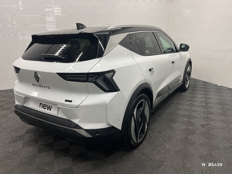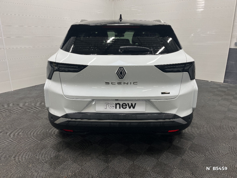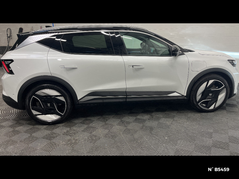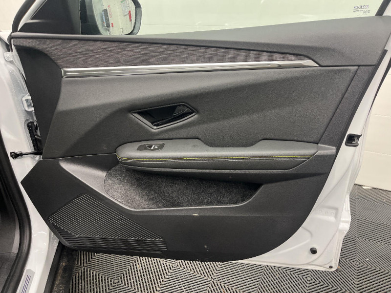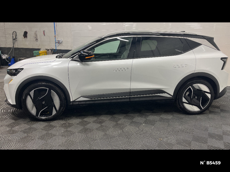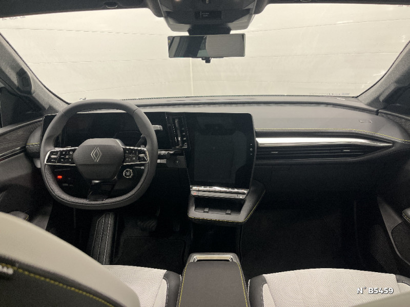 Kit de gonflage / Maintenance connectée, incluse pendant 8 ans / Projecteurs full LED directionnels avec fonction antibrouillard / Réplication smartphone / Rétroviseur intérieur avec fonction caméra numérique / Sellerie en textile refined biosourcé noir titane et surpiqûres jaunes / Sièges AV chauffants et volant chauffant / Active driver assist : régulateur de vitesse adaptatif contextuel + centrage dans la voie / Active driver assist régulateur de vitesse adaptatif intelligent + centrage dans la voie / Console de rangement haute avec accoudoir central coulissant / Contrôle de la traction (TCS) / Sièges AV électriques à mémoire avec réglage et massage lombaire siège conducteur / Sièges avec système ISOFIX + Tether / Signature lumineuse AV / Système audio premium Harman Kardon / Système de reconnaissance du conducteur / Système d'optimisation de la température batterie (charge rapide DC) / Système Multimédia openR link 12" : Google intégré, préconditionnement batterie pour charge DC, audio premium Harman Kardon / Tableau de bord full numérique / Toit en verre fixe panoramique opacifiant solarbay / Volant chauffant / Volant en textile refined biosourcé / 2 feux de recul / Mise à jour système (via firmware over the air FOTA), inclus pendant 5 ans / Multi-sense / Notice d'utilisation digitale embarqué dans le système multimédia du véhicule / Option Iconic (sièges AV et volant chauffant, siège conducteur à réglage électrique et massant, sellerie spécifique claire, solarbay, jantes spécifiques 20", caméra 360 et full auto-park, radars AV, AR et latéraux, rétroviseur intérieur avec fonction caméra numérique, active driver assist, système audio premium Harman Kardon) / Pack contrôle à distance (via l¿application My Renault), inclus pendant 5 ans / Parking mains-libres (inclus aides au parking AV, AR et latérale) / Planche de bord en textile refined biosourcé noir titane et inserts décoratifs en Alcantara / Pompe à chaleur / Prédisposition éthylotest / Adaptateur power to object (charge bidirectionnelle V2L) / Airbags latéraux, milieu AV et rideaux / Alerte détection de fatigue / Alerte d'oubli de ceinture de sécurité / Alerte et prévention sortie de voie (dont urgence) / Alerte sortie sécurisée des occupants / Antenne Requin / Avertisseur d'angle mort et détection AR avec correction trajectoire d'urgence / Avertisseur de distance de sécurité / Avertisseur de sortie de stationnement en marche AR avec freinage d'urgence automatique / Boîte de vitesse Automate à fonction continue / Bouclier AV sport avec lame F1 / Câble pour borne de recharge (mode 3 type 2 triphasé, 5m) / Caméra 3D vision 360° / Carte Renault accès et démarrage mains libres / Changement d'intensité du freinage régénératif par palettes / Chargeur AC 11 kW triphasé / Clignotants défilants / Commutation automatique des feux de route/croisement / Freinage automatique d'urgence en ville pour deux roues et piétons / Gestion automatique des feux diurnes et des essuie-glaces / Hayon motorisé / Jantes alliage diamantées en noir brillant 20" oracle