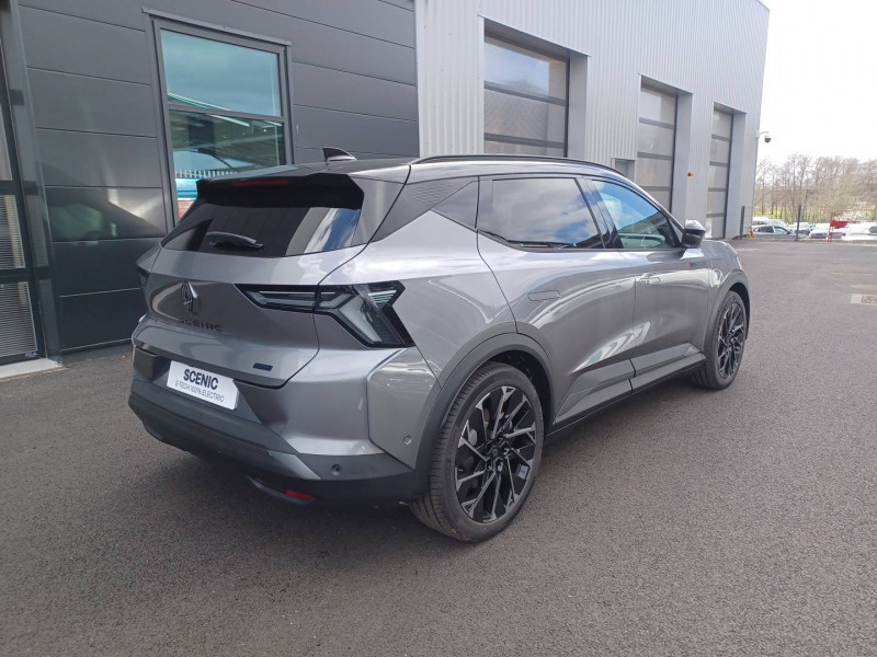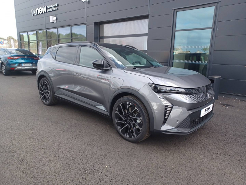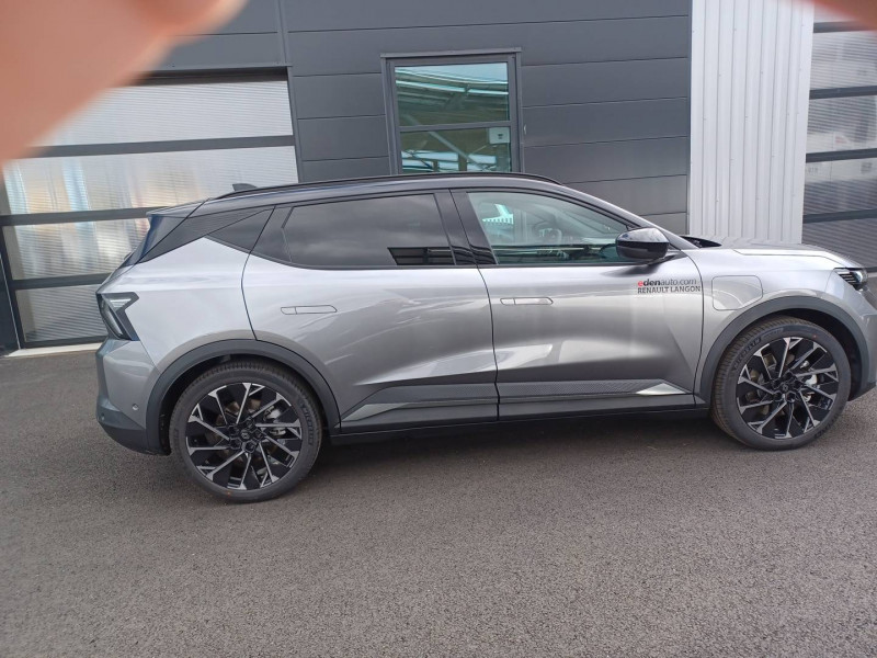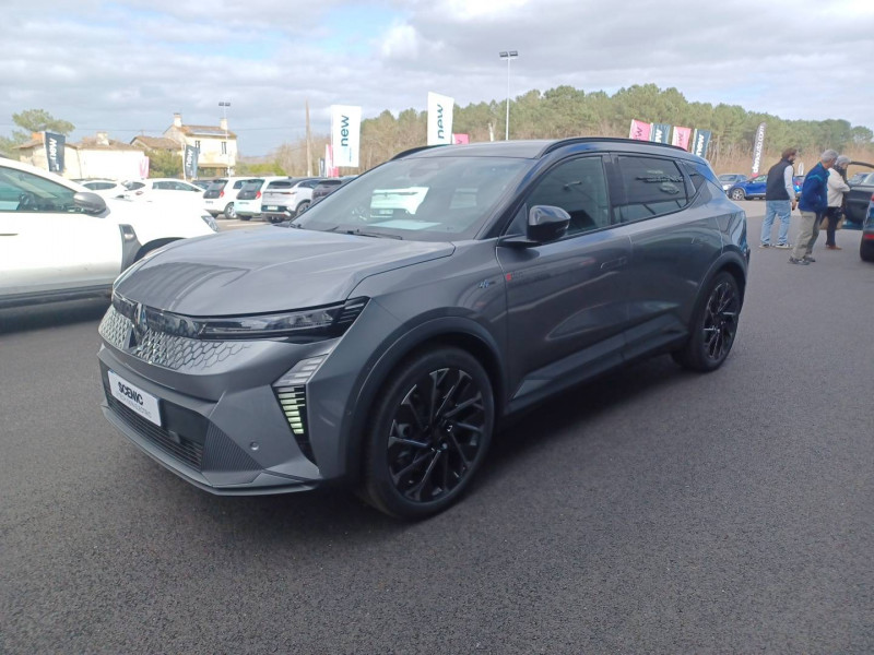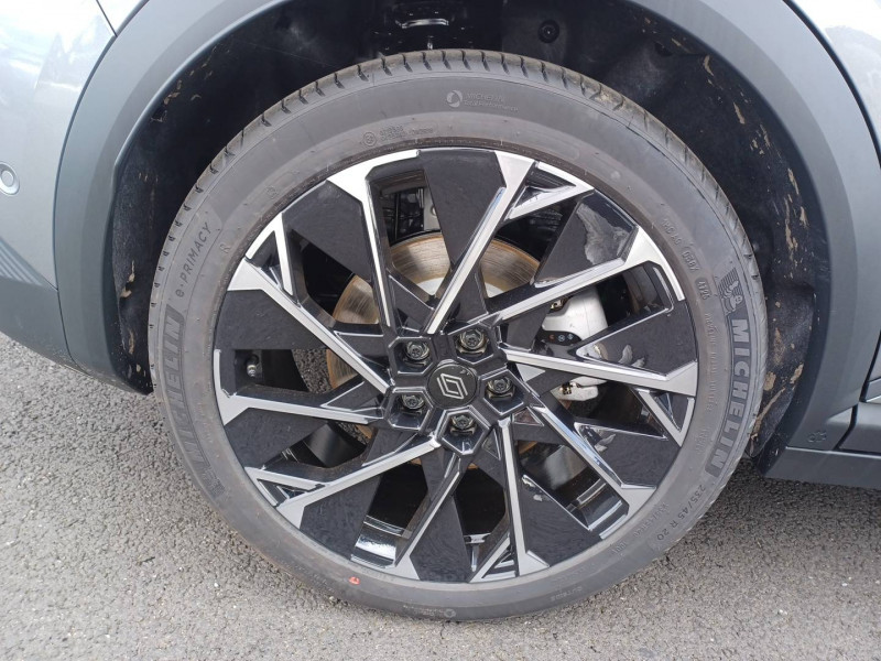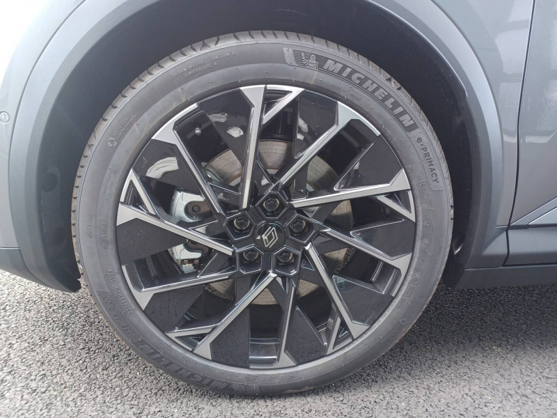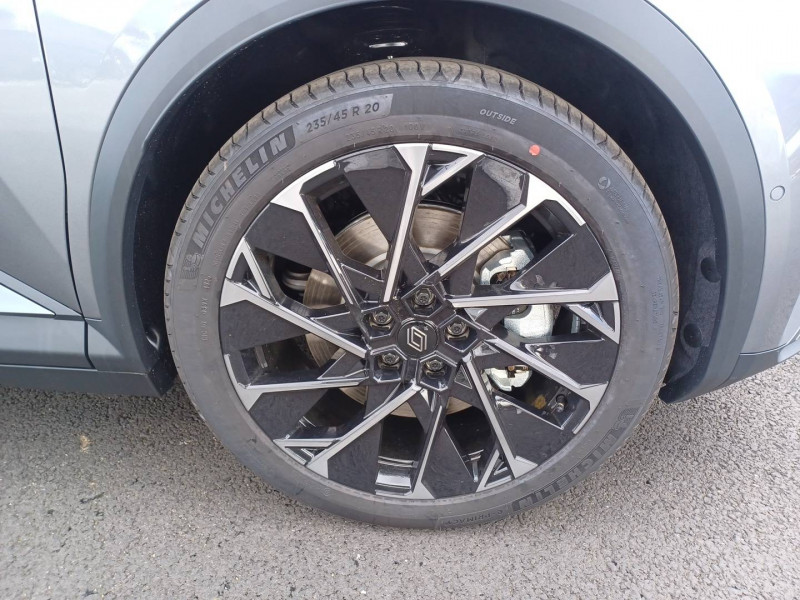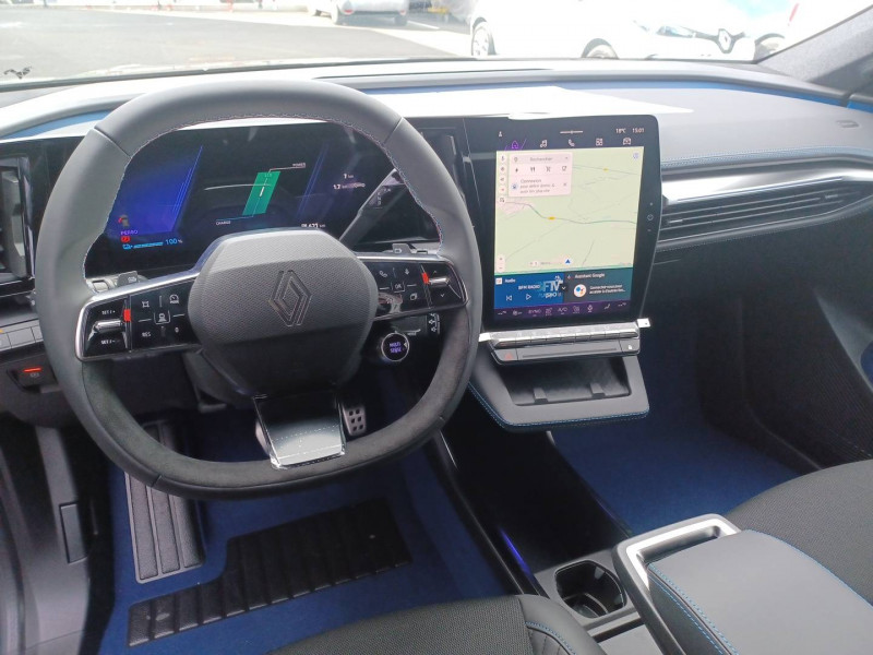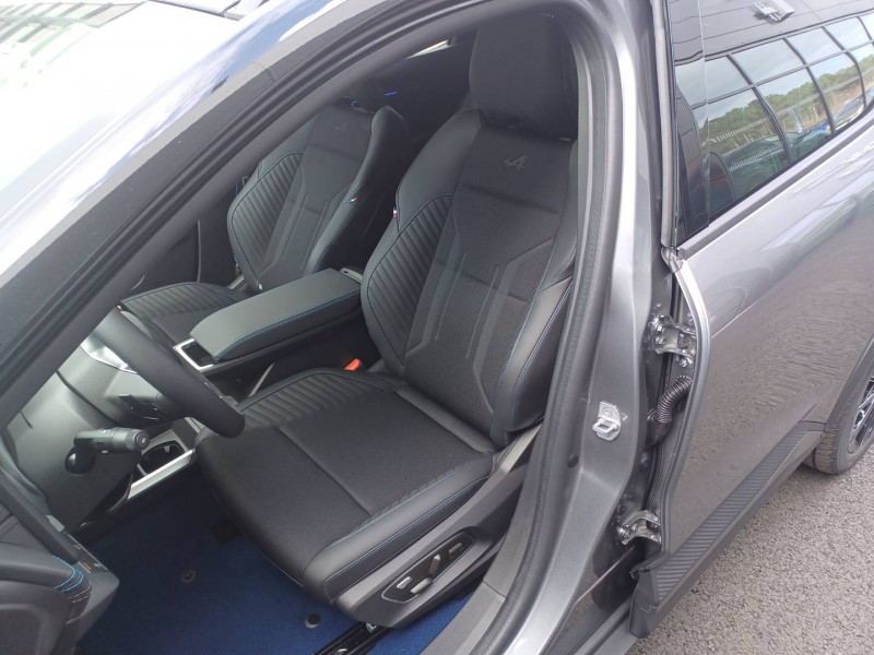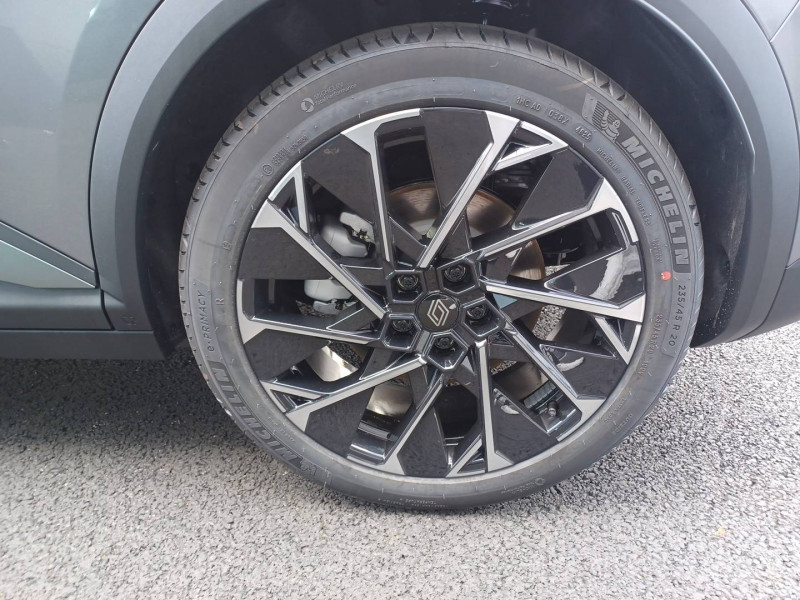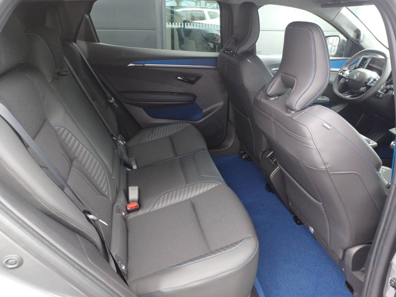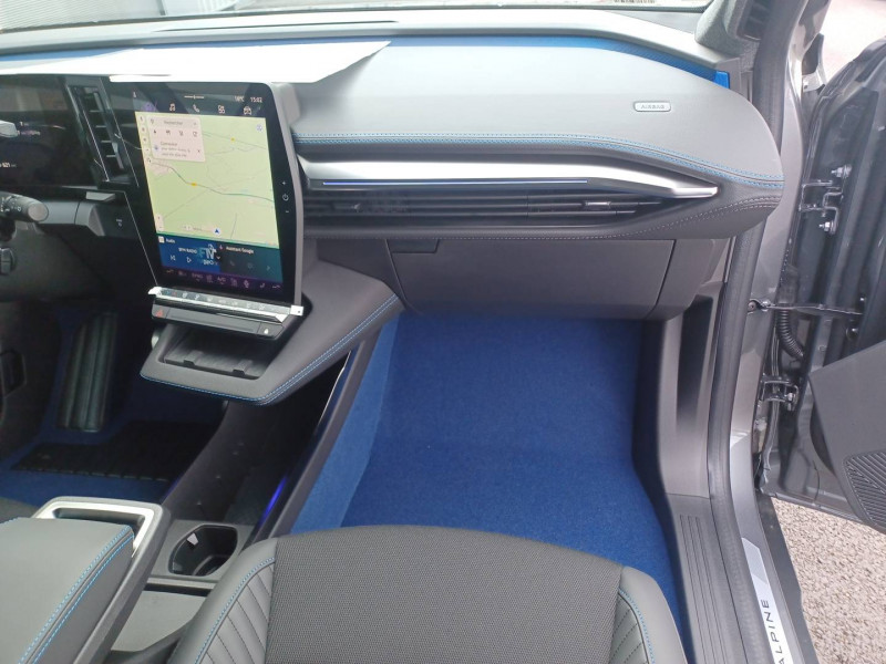 2 feux de recul / Airbags latéraux, milieu AV et rideaux / Alerte détection de fatigue / Alerte d'oubli de ceinture de sécurité / Alerte et prévention sortie de voie (dont urgence) / Antenne Requin / Avertisseur de distance de sécurité / Boîte de vitesse Automate à fonction continue / Bouclier AV sport avec lame F1 / Câble pour borne de recharge (mode 3 type 2 triphasé, 5m) / Caméra de recul digitale haute définition / Carte Renault accès et démarrage mains libres / Changement d'intensité du freinage régénératif par palettes / Chargeur AC 11 kW triphasé / Clignotants défilants / Commutation automatique des feux de route/croisement / Console de rangement haute avec accoudoir central coulissant / Contrôle de la traction (TCS) / Design esprit Alpine extérieur / Freinage automatique d'urgence en ville pour deux roues et piétons / Gestion automatique des feux diurnes et des essuie-glaces / Hayon motorisé / Jantes alliage diamantées en noir verni fumé 20" speedway / Kit de gonflage / Maintenance connectée, incluse pendant 8 ans / Mise à jour système (via firmware over the air FOTA), inclus pendant 5 ans / Multi-sense / Notice d'utilisation digitale embarqué dans le système multimédia du véhicule / Option esprit Alpine (sièges AV et volant chauffant, décors esprit Alpine, jantes spécifiques 20') / Pack contrôle à distance (via l'application My Renault), inclus pendant 5 ans / Pavillon et montants / Pompe à chaleur / Prédisposition éthylotest / Projecteurs full LED directionnels avec fonction antibrouillard / Réplication smartphone / Rétroviseur jour/nuit automatique / Sellerie maille embossée recyclée / textile refined matelassé noir titane et surpiqûres bleu Alpine / Sièges AV chauffants et volant chauffant / Sièges avec système ISOFIX + Tether / Sièges AV électriques à mémoire avec réglage et massage lombaire siège conducteur / Sièges typés sport, volant Alpine, planche de bord spécifique, pièces décor bleues / Signature lumineuse AV / Système de reconnaissance du conducteur / Système d'optimisation de la température batterie (charge rapide DC) / Système Multimédia openR link 12" : Google intégré, préconditionnement batterie pour charge DC, audio Arkamys Auditorium / Tableau de bord full numérique / Tapis spécifique bleu / Volant chauffant / Volant en textile refined biosourcé