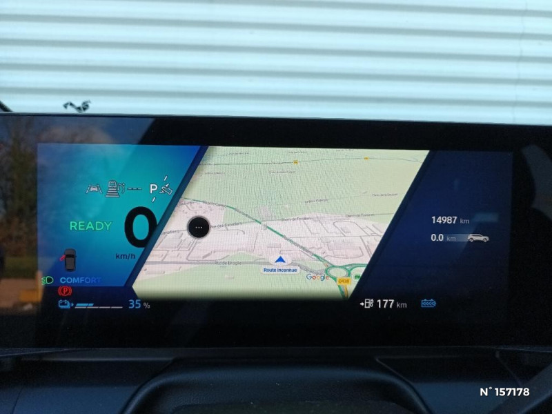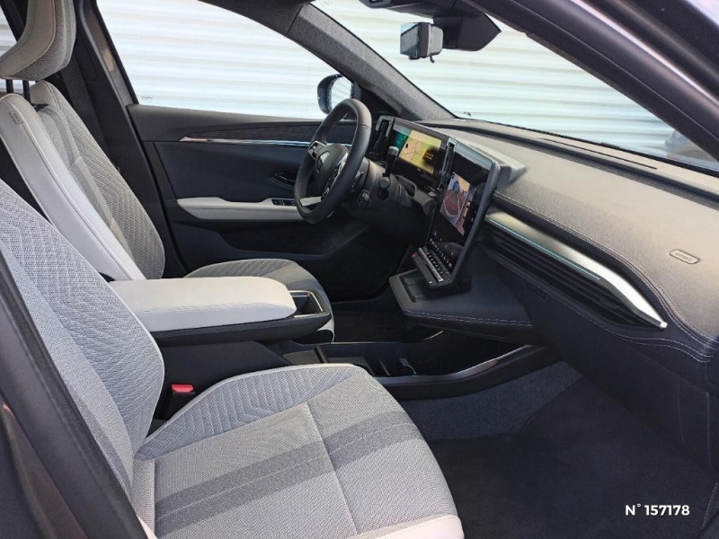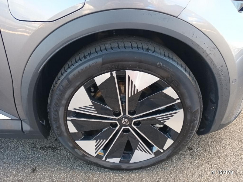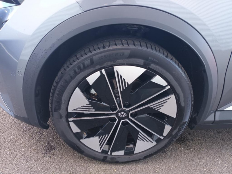 Freinage automatique d'urgence en ville pour deux roues et piétons / Régulateur et limiteur de vitesse avec centrage dans la voie (incl. volant chauffant) / Toit en verre fixe panoramique opacifiant solarbay / Option Iconic (sièges AV et volant chauffant, siège conducteur à réglage électrique et massant, sellerie spécifique claire, solarbay, jantes spécifiques 20", caméra 360 et full auto-park, radars AV, AR et latéraux, rétroviseur intérieur avec fonction caméra numérique, active driver assist, système audio premium Harman Kardon) / Système Multimédia openR link 12" : Google intégré, audio premium Harman Kardon® / Jantes alliage diamantées 20" oracle / Sellerie maille recyclée claire embossée / textile enduit grain fin recyclé clair / surpiqures gold / Pavillon et montants / 12 haut-parleurs/ 485W/ 5 ambiances / 2 feux de recul / Prise rang 1+2+3 / Siège conducteur AV électrique avec fonction lombaire électrique massant + siège passager manuel / Système Multimédia openR link 12" : Google intégré, préconditionnement batterie pour charge DC, audio premium Harman Kardon / Réplication smartphone / Clignotants défilants / Commutation automatique des feux de route/croisement / Multi-sense / Tableau de bord full numérique / Carte Renault accès et démarrage mains libres / Purificateur d'air / Volant chauffant / Antenne Requin / Avertisseur d'angle mort et détection AR avec correction trajectoire d'urgence / Alerte sortie sécurisée des occupants / Bouclier AV sport avec lame F1 / Projecteurs full LED directionnels avec fonction antibrouillard / Signature lumineuse AV / Airbags latéraux, milieu AV et rideaux / Alerte d'oubli de ceinture de sécurité / Kit de gonflage / Rétroviseur intérieur avec fonction caméra numérique / Pompe à chaleur / Notice d?utilisation digitale embarqué dans le système multimédia du véhicule / Câble pour borne de recharge (mode 3 type 2 monophasé, 5m) / Caméra 3D vision 360° / Avertisseur de sortie de stationnement en marche AR avec freinage d'urgence automatique / Hayon motorisé / Alerte et prévention sortie de voie (dont urgence) / Parking mains-libres (inclus aides au parking AV, AR et latérale) / Système d'optimisation de la température batterie (charge rapide DC) / Gestion automatique des feux diurnes et des essuie-glaces / Volant enduit grainé / Changement d'intensité du freinage régénératif par palettes / Sièges avec système ISOFIX + Tether / Avertisseur de distance de sécurité AV / Console de rangement haute avec accoudoir central coulissant / Alerte détection de fatigue / Charge AC 7kW + DC 130 kW (autonomie confort) ou DC 150 kW / Active driver assist régulateur de vitesse adaptatif intelligent + centrage dans la voie / Prédisposition éthylotest