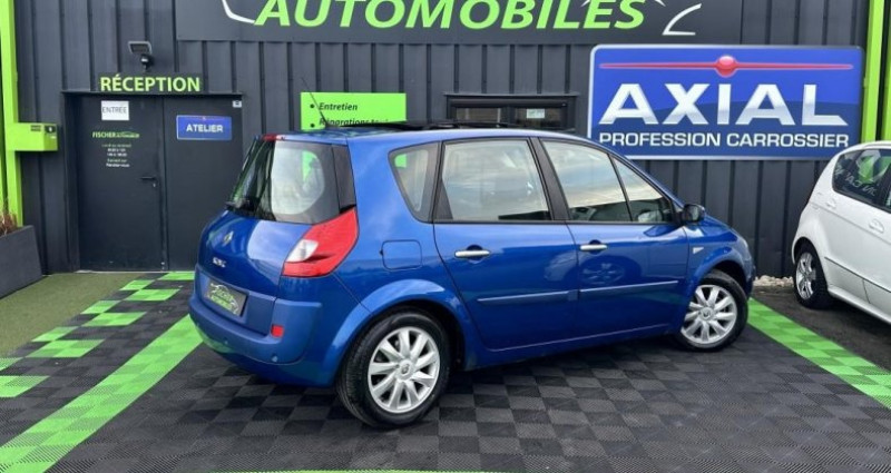 Renault Scénic 1.6L 16V 110 CH EXEPTION BVA 1ERE MAIN monospace, bleu, 7 cv, première mise en circulation le 25/10/2007, garantie 12 mois. 5 places OPTIONS ET ÉQUIPEMENTS : Audio - Télécommunications : - Commande Radio au Volant - Bluetooth - CD - GPS - auto-radio : CD Conduite : - Boite automatique - Démarrage sans clés - allumage automatique des feux - détecteur de pluie - limiteur de vitesse - régulateur de vitesse Extérieur : - Jantes en alu - radar arrière de détection d'obstacles - radar d'aide au stationnement - rétroviseurs rabattables - toit ouvrant - toit ouvrant électrique Intérieur : - Siège arrière coulissant - accoudoir central - climatisation : automatique - direction assistée - fermeture centralisée - indicateur de température extérieur - ordinateur de bord - rideaux pare-soleil - sieges reglables en hauteur - vitres électriques Pack : - Sur-tapis AV / AR Sellerie : - Sellerie cuir Sécurité : - ABS - ESP - airbag coté passager - fixations ISOFIX - phares antibrouillard - roue de secours Autres équipements et informations : - Courroie de distribution remplacée - Faible Kilométrage - Ouverture sans clés - 1ère Main - Classe Crit'air : 2 - Puissance kilowatt : 81 kw - puissance réelle : 110 ch Référence annonce : 307