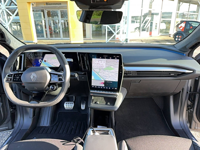 2 feux de recul / Airbags latéraux, milieu AV et rideaux / Alerte détection de fatigue / Alerte d'oubli de ceinture de sécurité / Alerte et prévention sortie de voie (dont urgence) / Antenne Requin / Avertisseur de distance de sécurité / Boîte de vitesse Automate à fonction continue / Bouclier AV sport avec lame F1 / Câble pour borne de recharge (mode 3 type 2 triphasé, 5m) / Caméra de recul digitale haute définition / Carte Renault accès et démarrage mains libres / Changement d'intensité du freinage régénératif par palettes / Chargeur AC 11 kW triphasé / Clignotants défilants / Commutation automatique des feux de route/croisement / Console de rangement haute avec accoudoir central coulissant / Contrôle de la traction (TCS) / Design esprit Alpine extérieur / Freinage automatique d'urgence en ville pour deux roues et piétons / Gestion automatique des feux diurnes et des essuie-glaces / Hayon motorisé / Jantes alliage diamantées en noir verni fumé 20" speedway / Kit de gonflage / Maintenance connectée, incluse pendant 8 ans / Mise à jour système (via firmware over the air FOTA), inclus pendant 5 ans / Multi-sense / Notice d'utilisation digitale embarqué dans le système multimédia du véhicule / Option esprit Alpine (sièges AV et volant chauffant, décors esprit Alpine, jantes spécifiques 20') / Pack contrôle à distance (via l'application My Renault), inclus pendant 5 ans / Pavillon et montants / Pompe à chaleur / Prédisposition éthylotest / Projecteurs full LED directionnels avec fonction antibrouillard / Réplication smartphone / Rétroviseur jour/nuit automatique / Sellerie maille embossée recyclée / textile refined matelassé noir titane et surpiqûres bleu Alpine / Sièges AV chauffants et volant chauffant / Sièges avec système ISOFIX + Tether / Sièges AV électriques à mémoire avec réglage et massage lombaire siège conducteur / Sièges typés sport, volant Alpine, planche de bord spécifique, pièces décor bleues / Signature lumineuse AV / Système de reconnaissance du conducteur / Système d'optimisation de la température batterie (charge rapide DC) / Système Multimédia openR link 12" : Google intégré, préconditionnement batterie pour charge DC, audio Arkamys Auditorium / Tableau de bord full numérique / Tapis spécifique bleu / Volant chauffant / Volant en textile refined biosourcé