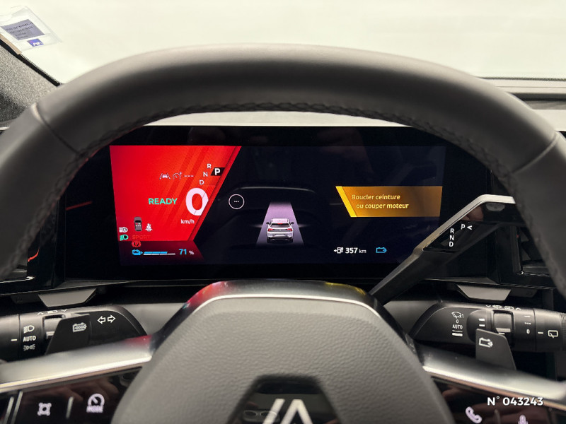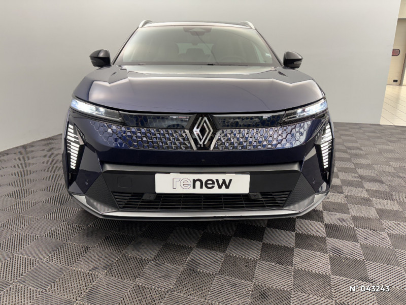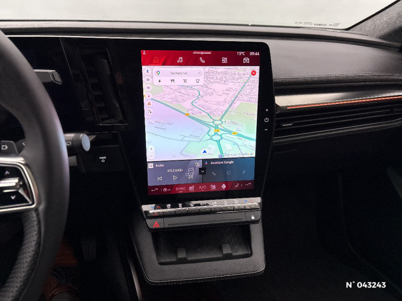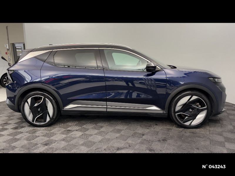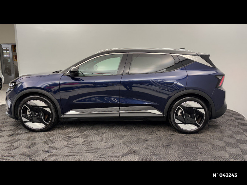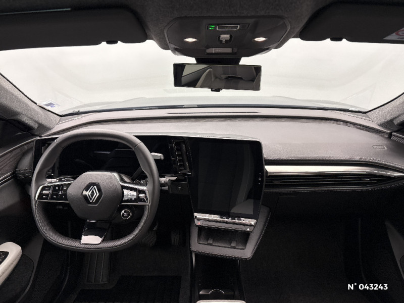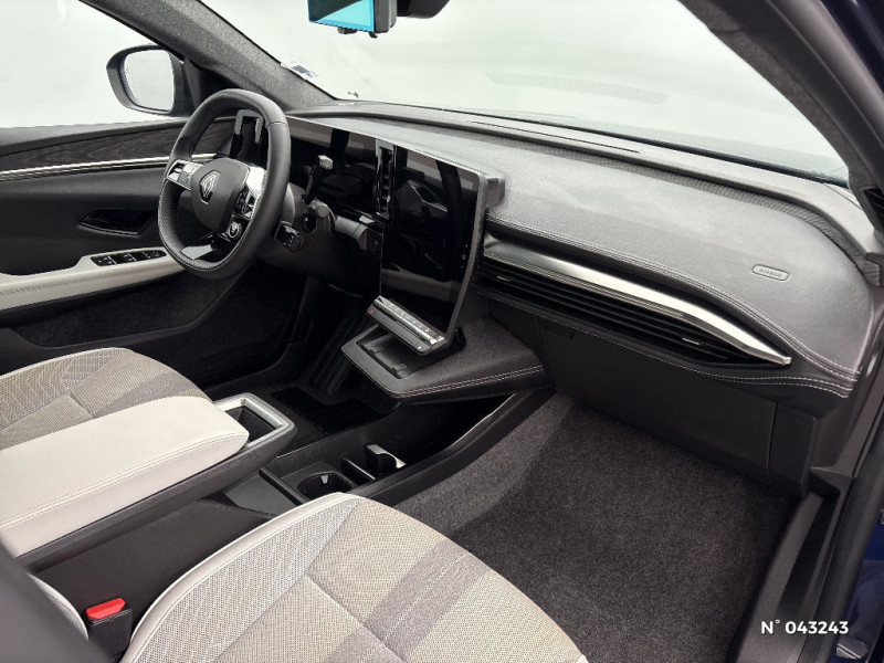 Freinage automatique d'urgence en ville pour deux roues et piétons / Avertisseur d'angle mort et détection AR avec correction trajectoire d'urgence / Avertisseur de sortie de stationnement en marche AR avec freinage d'urgence automatique / Alerte sortie sécurisée des occupants / Toit en verre fixe panoramique opacifiant solarbay / Régulateur et limiteur de vitesse avec centrage dans la voie (incl. volant chauffant) / Volant en textile refined biosourcé / Système de reconnaissance du conducteur / Chargeur AC 11 kW triphasé / Câble pour borne de recharge (mode 3 type 2 triphasé, 5m) / Système audio premium Harman Kardon / Active driver assist : régulateur de vitesse adaptatif contextuel + centrage dans la voie / Planche de bord en textile refined biosourcé noir titane et inserts décoratifs en Alcantara / Sellerie en textile refined biosourcé noir titane et surpiqures jaunes / Sièges AV électriques avec réglage lombaire + siège conducteur massant / Jantes alliage diamantées en noir brillant 20" oracle / Purificateur d'air / Volant chauffant / Antenne Requin / Bouclier AV sport avec lame F1 / Projecteurs full LED directionnels avec fonction antibrouillard / Signature lumineuse AV / Airbags latéraux, milieu AV et rideaux / Hayon motorisé / Alerte et prévention sortie de voie (dont urgence) / Parking mains-libres (inclus aides au parking AV, AR et latérale) / Système d'optimisation de la température batterie (charge rapide DC) / Gestion automatique des feux diurnes et des essuie-glaces / Volant enduit grainé / Changement d'intensité du freinage régénératif par palettes / Sièges avec système ISOFIX + Tether / Avertisseur de distance de sécurité AV / Console de rangement haute avec accoudoir central coulissant / Alerte détection de fatigue / Charge AC 7kW + DC 130 kW (autonomie confort) ou DC 150 kW / Alerte d'oubli de ceinture de sécurité / Kit de gonflage / Rétroviseur intérieur avec fonction caméra numérique / Pompe à chaleur / Câble pour borne de recharge (mode 3 type 2 monophasé, 5m) / Caméra 3D vision 360° / Option Iconic (sièges AV et volant chauffant, siège conducteur à réglage électrique et massant, sellerie spécifique claire, solarbay, jantes spécifiques 20", caméra 360 et full auto-park, radars AV, AR et latéraux, rétroviseur intérieur avec fonction caméra numérique, active driver assist, système audio premium Harman Kardon) / Jantes alliage diamantées 20" oracle / Sellerie maille recyclée claire embossée / textile enduit grain fin recyclé clair / surpiqures gold / Pavillon et montants / 2 feux de recul / Prise rang 1+2+3 / Siège conducteur AV électrique avec fonction lombaire électrique massant + siège passager manuel / Adaptateur power to object (charge bidirectionnelle V2L) / Système Multimédia openR link 12" : Google intégré, préconditionnement batterie pour charge DC, audio premium Harman Kardon / Régulateur de vitesse adaptatif + centrage dans la voie (incl. volant chauffant) / Sièges AV chauffants et volant chauffant / Contrôle de la traction (TCS) / Boîte de vitesse Automate à fonction continue / Active driver assist régulateur de vitesse adaptatif intelligent + centrage dans la voie / Prédisposition éthylotest / Réplication smartphone / Clignotants défilants / Commutation automatique des feux de route/croisement / Multi-sense / Tableau de bord full numérique / Carte Renault accès et démarrage mains libres