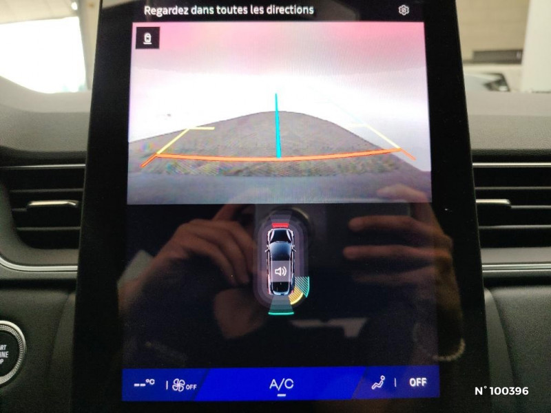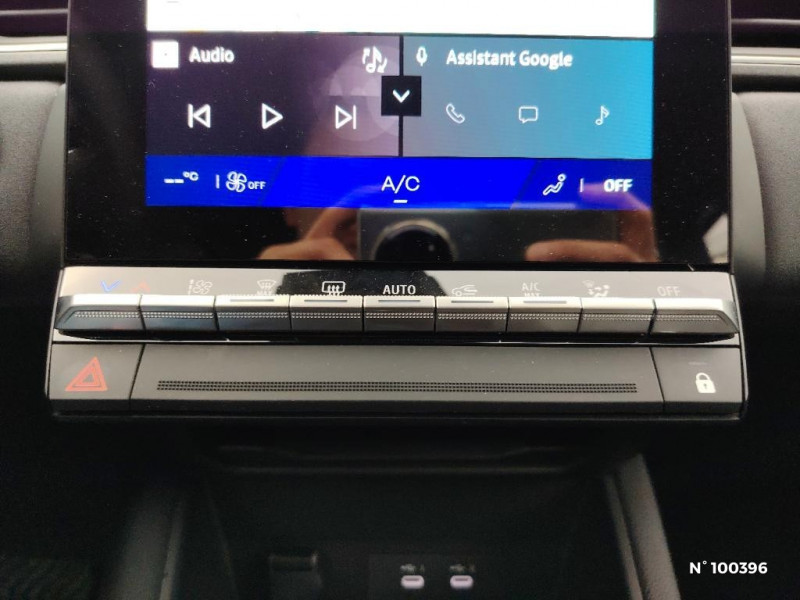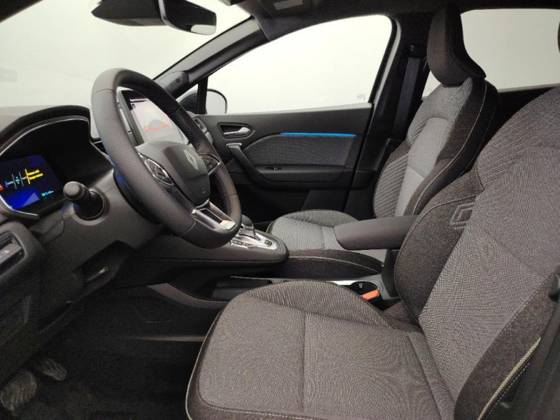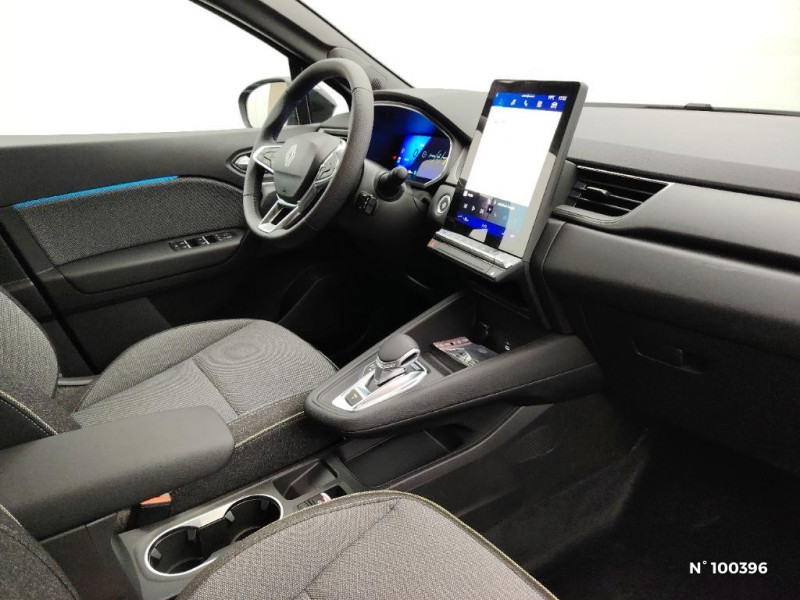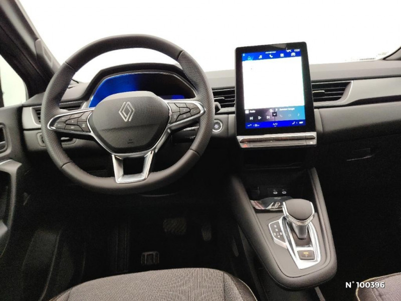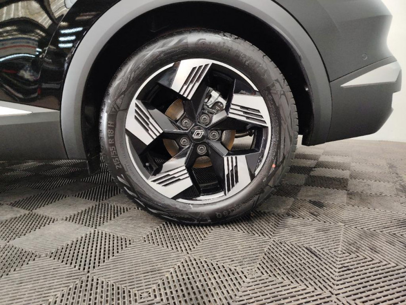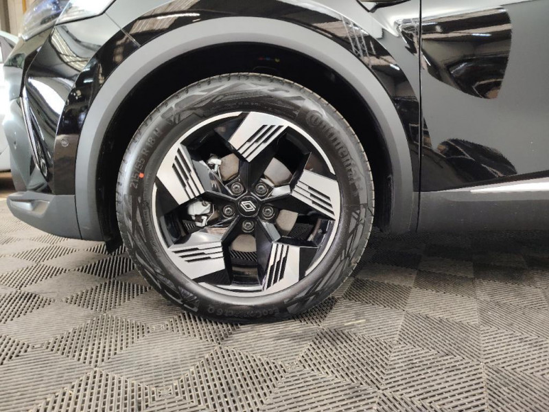 Boîte de vitesse automatique 4 rapports / Sellerie Techno / Système multimédia openR link 10.4" avecGoogle intégré / Feux AR avec signature lumineuse Y / Système de contrôle de trajectoire ESC avec aide au démarrage en côte / Ouverture du hayon manuelle / Contrôle de la traction (TCS) / Ceinture centrale arrière 3 points / Kit de gonflage / Indicateur de changement de vitesse / Alerte Distance Sécurité / Poignées de portes ton caisse / Répétiteurs latéraux de changement de direction / Antenne Requin / Système ISOFIX (i-Size) aux places latérales AR et passager AV / Aide au parking AV/AR et latéral / Eclairage AV et AR Full LED Pure Vision / Renault Multi-sense / Boitier connect AIVC / Cartographie Standard / Tableau de bord avec écran numérique et personnalisable 10" / Frein de parking électrique avec fonction Auto-Hold / Feux AR 3D / Alerte franchissement de ligne et assistant maintien dans la voie / Rétroviseur intérieur chrome frameless / Alerte détection de fatigue / Prédisposition éthylotest / Compartiment de coffre / My Safety switch (raccourci vers configuration personnalisée des aides à la conduite) / Miroirs de courtoisie rétroéclairés / Jantes alliage 18'' diamantées Gravity