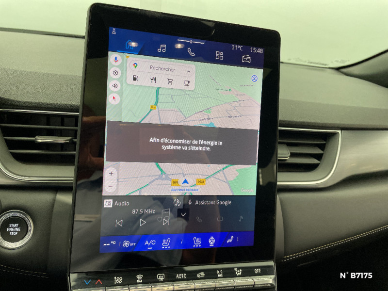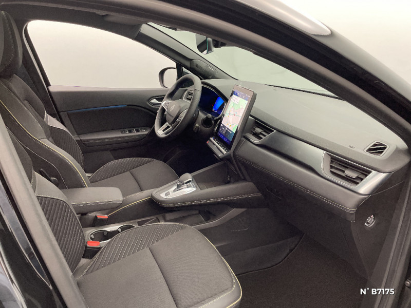 Frein de parking électrique avec fonction Auto-Hold / Indicateur de changement de vitesse / Jantes alliage 19'' diamantées Pulsar / Kit de gonflage / Miroirs de courtoisie rétroéclairés / My Safety switch (raccourci vers configuration personnalisée des aides à la conduite) / Notice d'utilisation digitale embarqué dans le système multimédia du véhicule / Parking mains-libres / Peinture opaque vernie / Poignées de portes ton caisse / Prédisposition éthylotest / Renault Multi-sense / Répétiteurs latéraux de changement de direction / Rétroviseur intérieur chrome frameless / Sans pontets AR / Sièges AV à réglage électrique 6 voies et conducteur réglage manuel lombaire / Système de contrôle de trajectoire ESC avec aide au démarrage en côte / Harmonie Ionic / Hayon motorisé main libre / Système ISOFIX (i-Size) aux places latérales AR et passager AV / Système multimédia openR link 10.4" avecGoogle intégré / Tableau de bord avec écran numérique et personnalisable 10" / Volant chauffant / Alerte de distance de sécurité / Alerte détection de fatigue / Alerte franchissement de ligne et assistant maintien dans la voie / Alerte sortie sécurisée des occupants / Antenne Requin / Avertisseur d'angle mort et détection AR avec centrage dans la voie / Avertisseur de sortie de stationnement en marche AR avec freinage d'urgence automatique / Boîte de vitesse automatique 4 rapports / Boitier connect AIVC / Caméra 3D vision 360° / Caméra 360° / Cartographie Standard / Ceinture centrale AR 3 points / Compartiment de coffre / Conduite hybride prédictive / Contrôle de la traction (TCS) / Eclairage AV et AR Full LED Pure Vision / Feux AR avec signature lumineuse Y / Feux AR 3D
