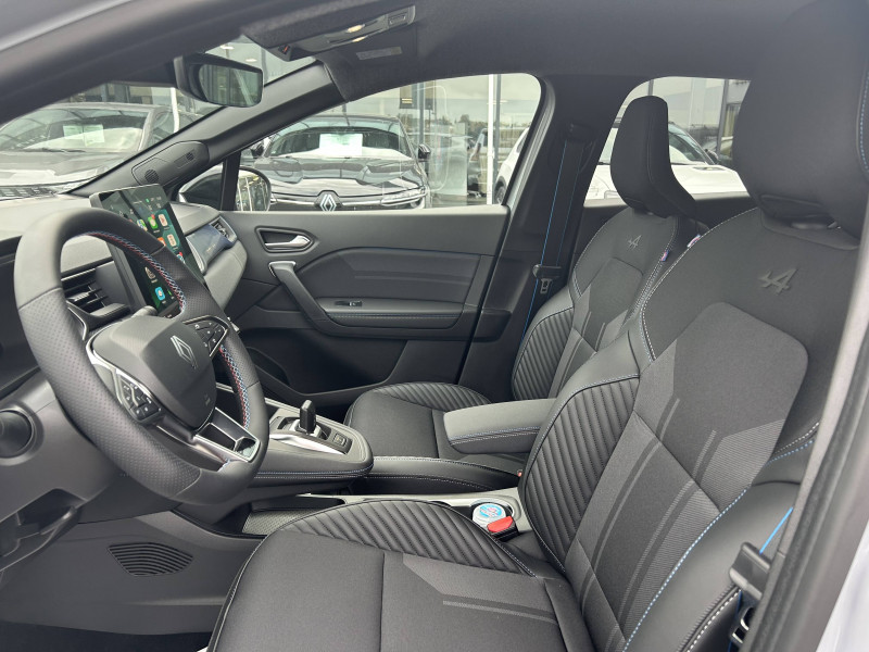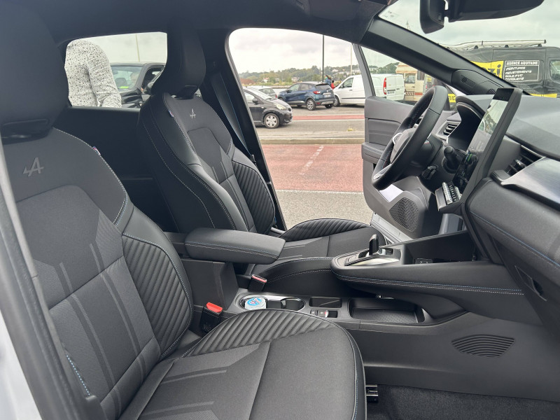 Aide au parking AV/AR et latéral / Alerte de distance de sécurité / Alerte détection de fatigue / Alerte franchissement de ligne et assistant maintien dans la voie / Antenne Requin / Boîte de vitesse automatique 4 rapports / Boitier connect AIVC / Cartographie Standard / Ceinture centrale AR 3 points / Compartiment de coffre / Contrôle de la traction (TCS) / Design esprit Alpine extérieur / Design esprit Alpine intérieur / Eclairage AV et AR Full LED Pure Vision / Feux AR 3D / Feux AR avec signature lumineuse Y / Frein de parking électrique avec fonction Auto-Hold / Harmonie esprit Alpine / Indicateur de changement de vitesse / Jantes alliage 19'' diamantées Alpine Elixir / Kit de gonflage / Miroirs de courtoisie rétroéclairés / My Safety switch (raccourci vers configuration personnalisée des aides à la conduite) / Ouverture du hayon manuelle / Peinture opaque vernie / Poignées de portes ton caisse / Prédisposition éthylotest / Renault Multi-sense / Répétiteurs latéraux de changement de direction / Rétroviseur intérieur chrome frameless / Sellerie Esprit Alpine / Système de contrôle de trajectoire ESC avec aide au démarrage en côte / Système ISOFIX (i-Size) aux places latérales AR et passager AV / Système multimédia openR link 10.4" avecGoogle intégré / Tableau de bord avec écran numérique et personnalisable 10" / Volant chauffant