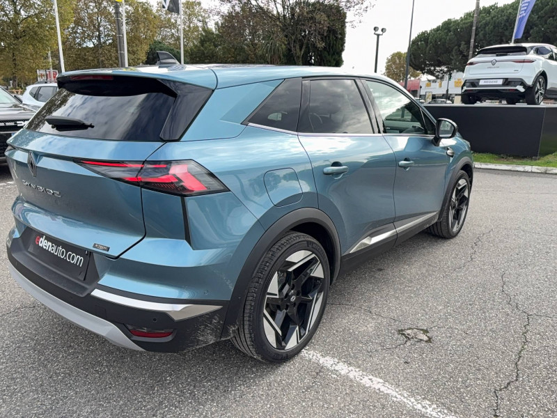 Alerte de distance de sécurité / Alerte détection de fatigue / Alerte franchissement de ligne et assistant maintien dans la voie / Alerte sortie sécurisée des occupants / Antenne Requin / Avertisseur d'angle mort et détection AR avec centrage dans la voie / Avertisseur de sortie de stationnement en marche AR avec freinage d'urgence automatique / Boîte de vitesse hybride multimode 6 rapports / Boitier connect AIVC / Caméra 360° / Cartographie Standard / Ceinture centrale AR 3 points / Compartiment de coffre / Contrôle de la traction (TCS) / Eclairage AV et AR Full LED Pure Vision / Feux AR 3D / Feux AR avec signature lumineuse Y / Frein de parking électrique avec fonction Auto-Hold / Harmonie Ionic / Hayon motorisé main libre / Indicateur de changement de vitesse / Jantes alliage 19'' diamantées Pulsar / Kit de gonflage / Maintenance connectée, incluse pendant 8 ans / Miroirs de courtoisie rétroéclairés / Mise à jour système (via firmware over the air FOTA), inclus pendant 5 ans / My Safety switch (raccourci vers configuration personnalisée des aides à la conduite) / Pack connected driving, inclus pendant 5 ans / Pack contrôle à distance (via l'application My Renault), inclus pendant 5 ans / Parking mains-libres / Peinture opaque vernie / Poignées de portes ton caisse / Prédisposition éthylotest / Renault Multi-sense / Répétiteurs latéraux de changement de direction / Rétroviseur intérieur chrome frameless / Sièges AV à réglage électrique 6 voies et conducteur réglage manuel lombaire / Système de contrôle de trajectoire ESC avec aide au démarrage en côte / Système ISOFIX (i-Size) aux places latérales AR et passager AV / Système multimédia openR link 10.4" avecGoogle intégré / Tableau de bord avec écran numérique et personnalisable 10" / Volant chauffant