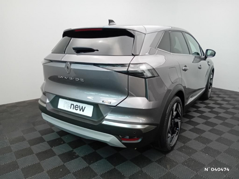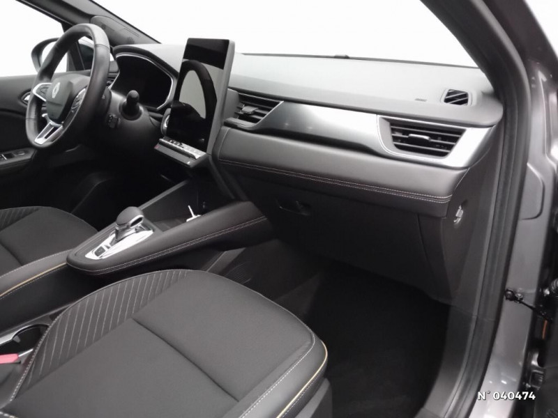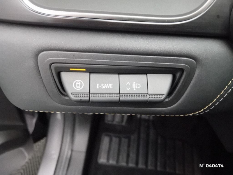 Alerte détection de fatigue / Prédisposition éthylotest / Alerte sortie sécurisée des occupants / Compartiment de coffre / Ceinture centrale arrière 3 points / Système multimédia openR link 10.4" avecGoogle intégré / Feux AR avec signature lumineuse Y / Système de contrôle de trajectoire ESC avec aide au démarrage en côte / Contrôle de la traction (TCS) / Boîte de vitesse automatique 4 rapports / Harmonie Ionic / My Safety switch (raccourci vers configuration personnalisée des aides à la conduite) / Miroirs de courtoisie rétroéclairés / Sièges AV à réglage électrique 6 voies et conducteur réglage manuel lombaire / Conduite hybride prédictive / Avertisseur d'angle mort et détection AR avec centrage dans la voie / Parking mains-libres / Kit de gonflage / Indicateur de changement de vitesse / Alerte Distance Sécurité / Poignées de portes ton caisse / Volant chauffant / Répétiteurs latéraux de changement de direction / Caméra 360° / Peinture opaque vernie / Jantes alliage 19'' diamantées Pulsar / Antenne Requin / Système ISOFIX (i-Size) aux places latérales AR et passager AV / Eclairage AV et AR Full LED Pure Vision / Renault Multi-sense / Boitier connect AIVC / Cartographie Standard / Tableau de bord avec écran numérique et personnalisable 10" / Frein de parking électrique avec fonction Auto-Hold / Feux AR 3D / Caméra 3D vision 360° / Hayon motorisé main libre / Alerte franchissement de ligne et assistant maintien dans la voie / Avertisseur de sortie de stationnement en marche AR avec freinage d'urgence automatique / Rétroviseur intérieur chrome frameless