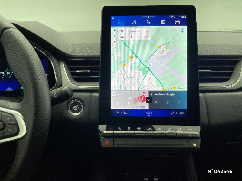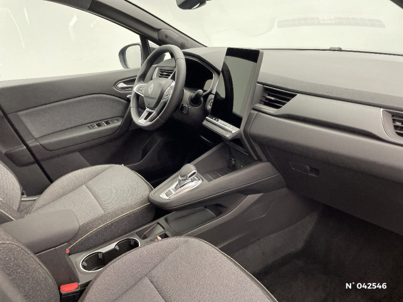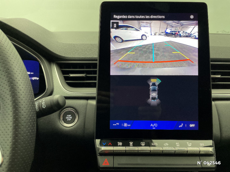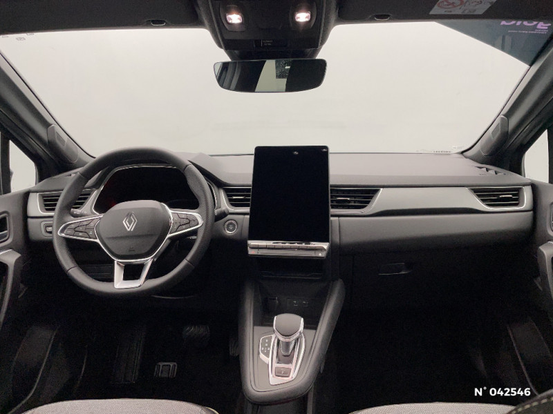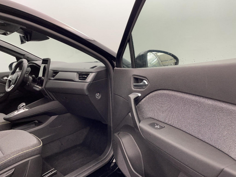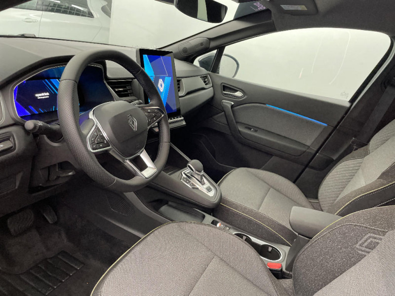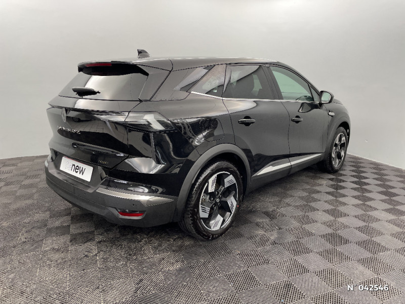 Répétiteurs latéraux de changement de direction / Antenne Requin / Système multimédia openR link 10.4" avecGoogle intégré / Feux AR avec signature lumineuse Y / Système de contrôle de trajectoire ESC avec aide au démarrage en côte / Ouverture du hayon manuelle / Contrôle de la traction (TCS) / Boîte de vitesse automatique 4 rapports / Système ISOFIX (i-Size) aux places latérales AR et passager AV / Aide au parking AV/AR et latéral / Eclairage AV et AR Full LED Pure Vision / Renault Multi-sense / Harmonie noire / Boitier connect AIVC / Cartographie Standard / Tableau de bord avec écran numérique et personnalisable 10" / Frein de parking électrique avec fonction Auto-Hold / Feux AR 3D / Alerte franchissement de ligne et assistant maintien dans la voie / Rétroviseur intérieur chrome frameless / Alerte détection de fatigue / Prédisposition éthylotest / Compartiment de coffre / My Safety switch (raccourci vers configuration personnalisée des aides à la conduite) / Miroirs de courtoisie rétroéclairés / Peinture opaque vernie / Jantes alliage 18'' diamantées Gravity / Sellerie Techno / Kit de gonflage / Indicateur de changement de vitesse / Alerte Distance Sécurité / Poignées de portes ton caisse / Ceinture centrale arrière 3 points