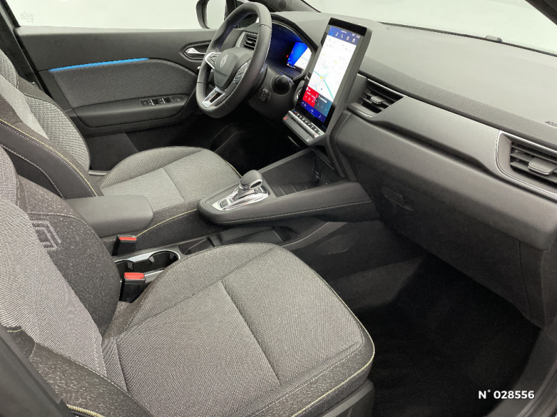 Ceinture centrale arrière 3 points / Kit de gonflage / Poignées de portes ton caisse / Répétiteurs latéraux de changement de direction / Antenne Requin / Système ISOFIX (i-Size) aux places latérales AR et passager AV / Aide au parking AV/AR et latéral / Eclairage AV et AR Full LED Pure Vision / Renault Multi-sense / Harmonie noire / Boitier connect AIVC / Cartographie Standard / Tableau de bord avec écran numérique et personnalisable 10" / Frein de parking électrique avec fonction Auto-Hold / Feux AR 3D / Alerte franchissement de ligne et assistant maintien dans la voie / Rétroviseur intérieur chrome frameless / Alerte détection de fatigue / Prédisposition éthylotest / Compartiment de coffre / My Safety switch (raccourci vers configuration personnalisée des aides à la conduite) / Miroirs de courtoisie rétroéclairés / Indicateur de changement de vitesse / Alerte Distance Sécurité / Peinture opaque vernie / Jantes alliage 18'' diamantées Gravity / Sellerie Techno / Système multimédia openR link 10.4" avecGoogle intégré / Feux AR avec signature lumineuse Y / Système de contrôle de trajectoire ESC avec aide au démarrage en côte / Ouverture du hayon manuelle / Contrôle de la traction (TCS) / Boîte de vitesse automatique 4 rapports