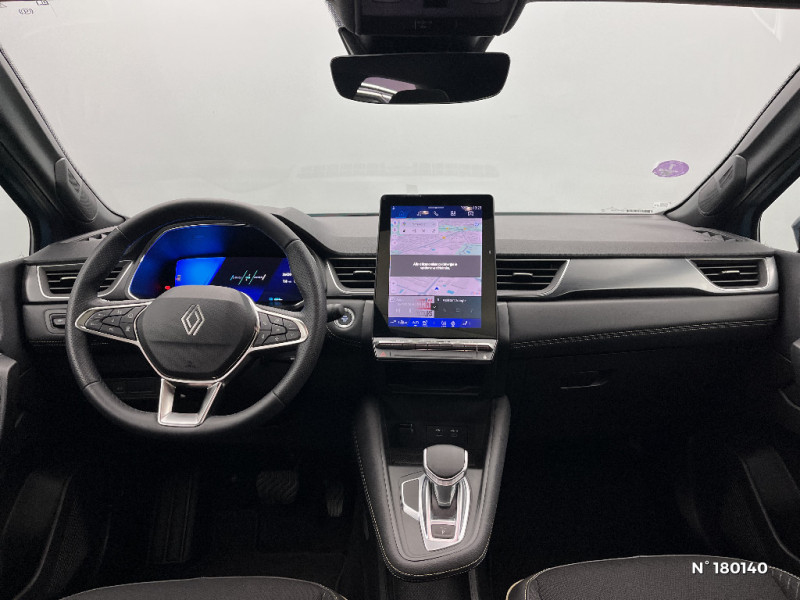 Notice d'utilisation digitale embarqué dans le système multimédia du véhicule / Système ISOFIX (i-Size) aux places latérales AR et passager AV / Système multimédia openR link 10.4" avecGoogle intégré / Tableau de bord avec écran numérique et personnalisable 10" / Volant chauffant / Parking mains-libres / Peinture opaque vernie / Poignées de portes ton caisse / Prédisposition éthylotest / Renault Multi-sense / Répétiteurs latéraux de changement de direction / Rétroviseur intérieur chrome frameless / Sans pontets AR / Sièges AV à réglage électrique 6 voies et conducteur réglage manuel lombaire / Système de contrôle de trajectoire ESC avec aide au démarrage en côte / Alerte de distance de sécurité / Alerte détection de fatigue / Alerte franchissement de ligne et assistant maintien dans la voie / Alerte sortie sécurisée des occupants / Antenne Requin / Avertisseur d'angle mort et détection AR avec centrage dans la voie / Avertisseur de sortie de stationnement en marche AR avec freinage d'urgence automatique / Boîte de vitesse automatique 4 rapports / Boitier connect AIVC / Caméra 3D vision 360° / Caméra 360° / Cartographie Standard / Ceinture centrale AR 3 points / Compartiment de coffre / Conduite hybride prédictive / Contrôle de la traction (TCS) / Eclairage AV et AR Full LED Pure Vision / Feux AR avec signature lumineuse Y / Feux AR 3D / Frein de parking électrique avec fonction Auto-Hold / Harmonie Ionic / Hayon motorisé main libre / Indicateur de changement de vitesse / Jantes alliage 19'' diamantées Pulsar / Kit de gonflage / Miroirs de courtoisie rétroéclairés / My Safety switch (raccourci vers configuration personnalisée des aides à la conduite)