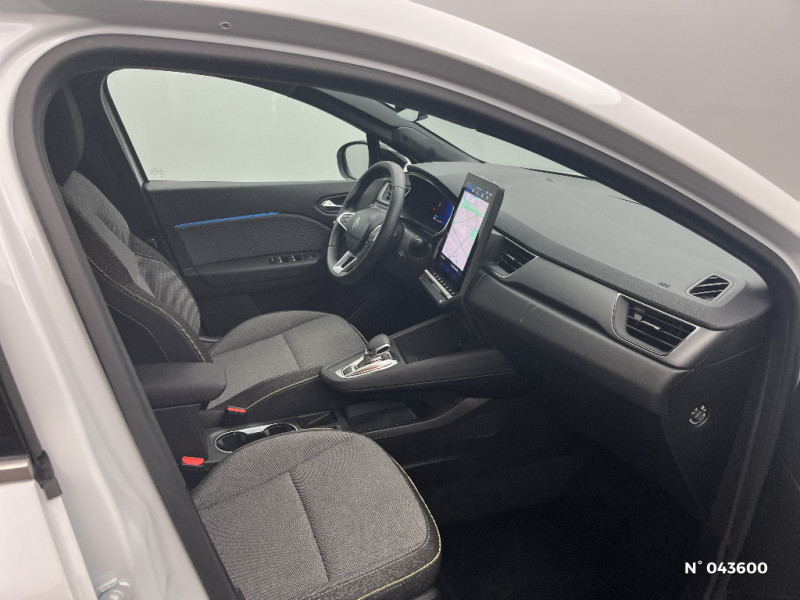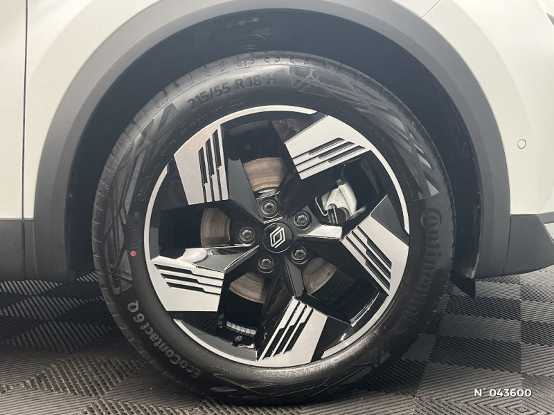 Système ISOFIX (i-Size) aux places latérales AR et passager AV / Aide au parking AV/AR et latéral / Eclairage AV et AR Full LED Pure Vision / Renault Multi-sense / Harmonie noire / Boitier connect AIVC / Cartographie Standard / Ceinture centrale arrière 3 points / Kit de gonflage / Indicateur de changement de vitesse / Alerte Distance Sécurité / Poignées de portes ton caisse / Répétiteurs latéraux de changement de direction / Antenne Requin / Tableau de bord avec écran numérique et personnalisable 10" / Frein de parking électrique avec fonction Auto-Hold / Feux AR 3D / Alerte franchissement de ligne et assistant maintien dans la voie / Rétroviseur intérieur chrome frameless / Alerte détection de fatigue / Prédisposition éthylotest / Compartiment de coffre / My Safety switch (raccourci vers configuration personnalisée des aides à la conduite) / Miroirs de courtoisie rétroéclairés / Peinture opaque vernie / Jantes alliage 18'' diamantées Gravity / Sellerie Techno / Système multimédia openR link 10.4" avecGoogle intégré / Feux AR avec signature lumineuse Y / Système de contrôle de trajectoire ESC avec aide au démarrage en côte / Ouverture du hayon manuelle / Contrôle de la traction (TCS) / Boîte de vitesse automatique 4 rapports