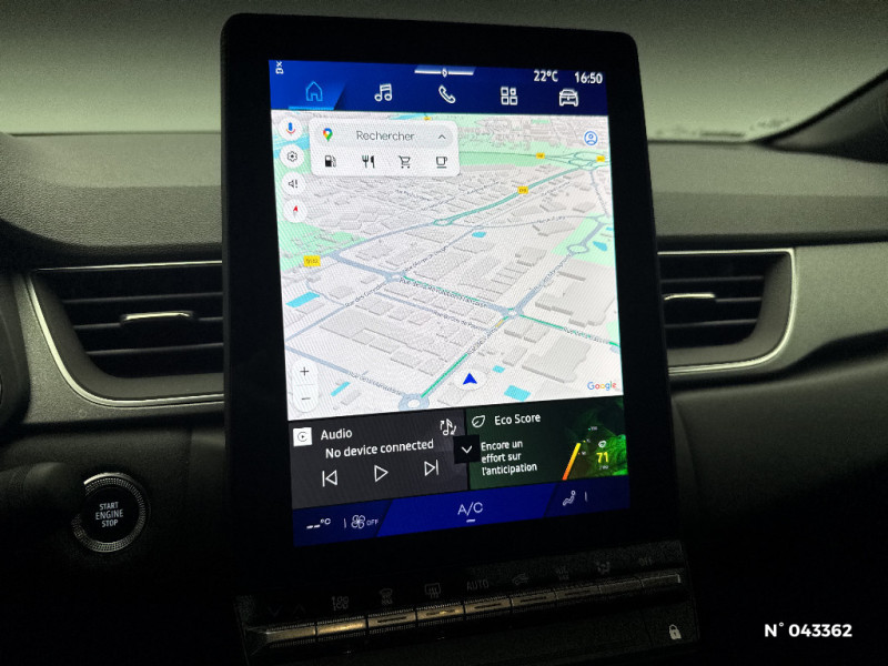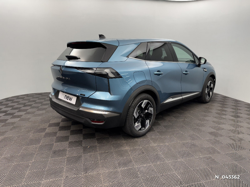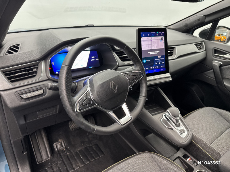 Système ISOFIX (i-Size) aux places latérales AR et passager AV / Aide au parking AV/AR et latéral / Eclairage AV et AR Full LED Pure Vision / Renault Multi-sense / Harmonie noire / Boitier connect AIVC / Cartographie Standard / Tableau de bord avec écran numérique et personnalisable 10" / Frein de parking électrique avec fonction Auto-Hold / Feux AR 3D / Alerte franchissement de ligne et assistant maintien dans la voie / Rétroviseur intérieur chrome frameless / Alerte détection de fatigue / Répétiteurs latéraux de changement de direction / Antenne Requin / Système multimédia openR link 10.4" avecGoogle intégré / Feux AR avec signature lumineuse Y / Système de contrôle de trajectoire ESC avec aide au démarrage en côte / Ouverture du hayon manuelle / Contrôle de la traction (TCS) / Boîte de vitesse automatique 4 rapports / Prédisposition éthylotest / Compartiment de coffre / My Safety switch (raccourci vers configuration personnalisée des aides à la conduite) / Miroirs de courtoisie rétroéclairés / Peinture opaque vernie / Jantes alliage 18'' diamantées Gravity / Sellerie Techno / Kit de gonflage / Indicateur de changement de vitesse / Alerte Distance Sécurité / Poignées de portes ton caisse / Ceinture centrale arrière 3 points