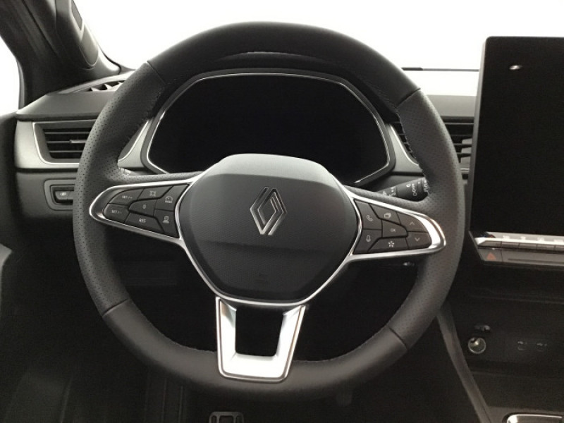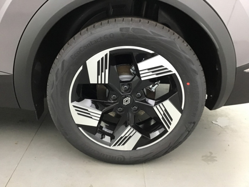 Aide au parking AV/AR et lateral / Alerte de distance de securite / Alerte detection de fatigue / Alerte franchissement de ligne et assistant maintien dans la voie / Antenne Requin / Boite de vitesse manuelle 6 rapports / Boitier connect AIVC / Console centrale AV avec accoudoir et rangement / Controle de la traction (TCS) / Eclairage AV et AR Full LED Pure Vision / Feux AR 3D / Feux AR avec signature lumineuse Y / Frein de parking electrique avec fonction Auto-Hold / Harmonie noire / Indicateur de changement de vitesse / Jantes alliage 18'' diamantees Gravity / Maintenance connectee, incluse pendant 8 ans / Miroirs de courtoisie retroeclaires / Mise a jour systeme (via firmware over the air FOTA), inclus pendant 5 ans / My Safety switch / Ouverture du hayon manuelle / Pack connected driving, inclus pendant 5 ans / Pack controle a distance (via lapplication My Renault), inclus pendant 5 ans / Peinture opaque vernie / Poignees de portes ton caisse / Renault Multi-sense / Repetiteurs lateraux de changement de direction / Retroviseur interieur chrome frameless / Sellerie Techno / Systeme de controle de trajectoire ESC avec aide au demarrage en cote / Systeme multimedia openR link 10.4" avecGoogle integre / Tableau de bord avec ecran numerique et personnalisable 10"