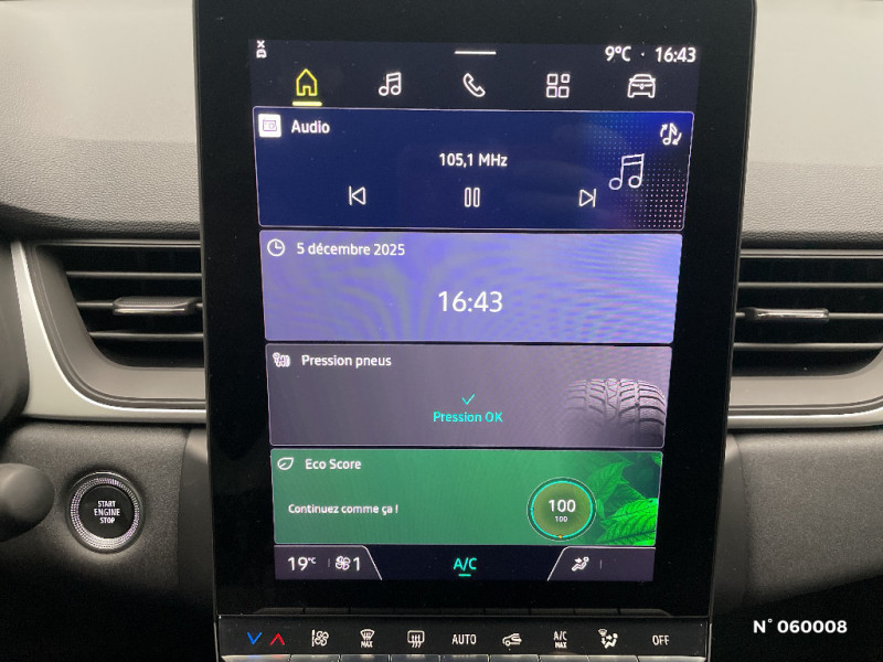 Eclairage AV et AR Full LED Pure Vision / Boitier connect AIVC / Frein de parking électrique avec fonction Auto-Hold / Feux AR 3D / Volant en tissus / Alerte franchissement de ligne et assistant maintien dans la voie / Système multimédia OpenR link 10'4 avec réplication smartphone (Android Auto & Apple Carplay) / Peinture nacrée / Contrôle de la traction (TCS) / Boîte de vitesse automatique 4 rapports / Alerte détection de fatigue / Prédisposition éthylotest / My Safety switch (raccourci vers configuration personnalisée des aides à la conduite) / Liseuses LED / Feux AR avec signature lumineuse Y / Système de contrôle de trajectoire ESC avec aide au démarrage en côte / Ouverture du hayon manuelle / Enjoliveurs 17'' Nymphea / Console centrale AV avec accoudoir et rangement / OpenR link 10,4'' access display audio avec tableau de bord avec écran numérique et personlisable 7" / Ceinture centrale arrière 3 points / Kit de gonflage / Indicateur de changement de vitesse / Alerte Distance Sécurité / Poignées de portes ton caisse / Répétiteurs latéraux de changement de direction / Antenne Requin / Harmonie beige / Système ISOFIX (i-Size) aux places latérales AR et passager AV