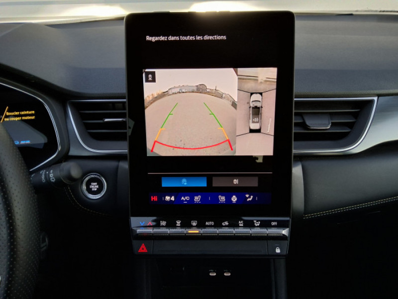Alerte de distance de securite / Alerte detection de fatigue / Alerte franchissement de ligne et assistant maintien dans la voie / Alerte sortie securisee des occupants / Antenne Requin / Avertisseur d'angle mort et detection AR avec centrage dans la voie / Avertisseur de sortie de stationnement en marche AR avec freinage d'urgence automatique / Boitier connect AIVC / Camera 3D vision 360° / Cartographie Standard / Ceinture centrale AR 3 points / Compartiment de coffre / Conduite hybride predictive / Eclairage AV et AR Full LED Pure Vision / Feux AR 3D / Feux AR avec signature lumineuse Y / Frein de parking electrique avec fonction Auto-Hold / Hayon motorise main libre / Indicateur de changement de vitesse / Jantes alliage 19'' diamantees Pulsar / Kit de gonflage / Miroirs de courtoisie retroeclaires / My Safety switch / Notice d'utilisation digitale embarque dans le systeme multimedia du vehicule / Parking mains-libres / Poignees de portes ton caisse / Renault Multi-sense / Repetiteurs lateraux de changement de direction / Retroviseur interieur chrome frameless / Sieges AV a reglage electrique 6 voies et conducteur reglage manuel lombaire / Systeme de controle de trajectoire ESC avec aide au demarrage en cote / Systeme ISOFIX (i-Size) aux places laterales AR et passager AV / Systeme multimedia openR link 10.4" avecGoogle integre / Tableau de bord avec ecran numerique et personnalisable 10" / Volant chauffant