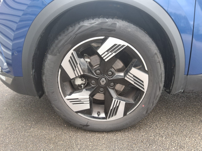 Aide au parking AV/AR et lateral / Alerte de distance de securite / Alerte detection de fatigue / Alerte franchissement de ligne et assistant maintien dans la voie / Antenne Requin / Boite de vitesse automatique 4 rapports / Cartographie Standard / Ceinture centrale AR 3 points / Compartiment de coffre / Controle de la traction (TCS) / Eclairage AV et AR Full LED Pure Vision / Feux AR 3D / Feux AR avec signature lumineuse Y / Frein de parking electrique avec fonction Auto-Hold / Harmonie noire / Indicateur de changement de vitesse / Jantes alliage 18'' diamantees Gravity / Kit de gonflage / Miroirs de courtoisie retroeclaires / My Safety switch / Poignees de portes ton caisse / Renault Multi-sense / Repetiteurs lateraux de changement de direction / Retroviseur interieur chrome frameless / Sellerie Techno / Systeme de controle de trajectoire ESC avec aide au demarrage en cote / Systeme multimedia openR link 10.4" avecGoogle integre / Tableau de bord avec ecran numerique et personnalisable 10"