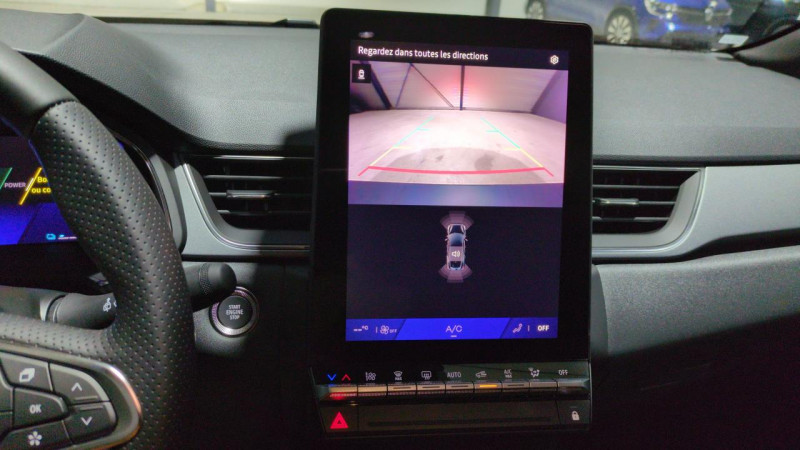 Aide au parking av/ar et latéral / Alerte de distance de sécurité / Alerte détection de fatigue / Alerte franchissement de ligne et assistant maintien dans la voie / Antenne requin / Boîte de vitesse hybride multimode 6 rapports / Ceinture centrale ar 3 points / Compartiment de coffre / Contrôle de la traction (tcs) / Eclairage av et ar full led pure vision / Feux ar 3d / Feux ar avec signature lumineuse y / Frein de parking électrique avec fonction auto-hold / Harmonie noire / Indicateur de changement de vitesse / Jantes alliage 18'' diamantées gravity / Miroirs de courtoisie rétroéclairés / Ouverture du hayon manuelle / Pack safety & driving : avertisseur de sortie de stationnement en marche ar avec freinage d'urgence automatique + alerte sortie sécurisée des occupants + régulateur de vitesse adaptatif + centrage dans la voie + avertisseur d'angles morts et détection ar avec centrage dans la voie / Poignées de portes ton caisse / Prédisposition éthylotest / Renault multi-sense / Répétiteurs latéraux de changement de direction / Rétroviseur intérieur chrome frameless / Sellerie techno / Système de contrôle de trajectoire esc avec aide au démarrage en côte / Système isofix (i-size) aux places latérales ar et passager av / Système multimédia openr link 10.4" avec google intégré / Tableau de bord avec écran numérique et personnalisable 10"