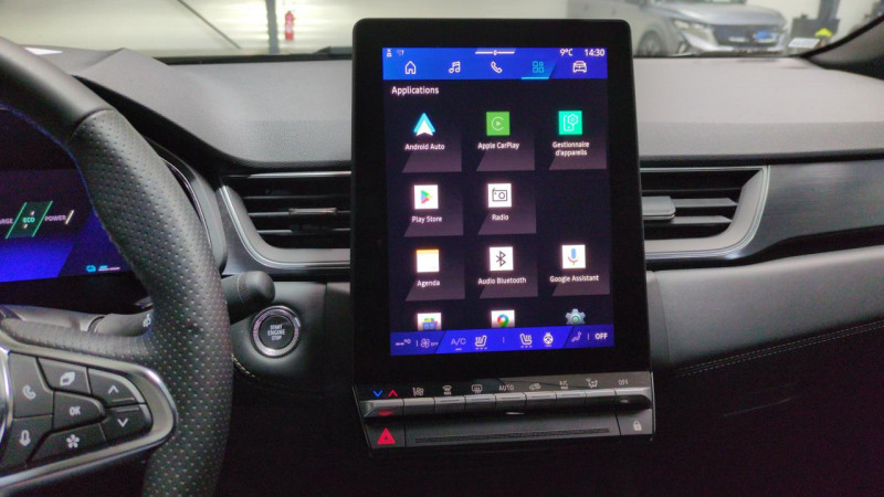 Alerte de distance de sécurité / Alerte détection de fatigue / Alerte franchissement de ligne et assistant maintien dans la voie / Alerte sortie sécurisée des occupants / Antenne requin / Avertisseur d'angle mort et détection ar avec centrage dans la voie / Avertisseur de sortie de stationnement en marche ar avec freinage d'urgence automatique / Boîte de vitesse automatique 4 rapports / Caméra 360° / Ceinture centrale ar 3 points / Compartiment de coffre / Contrôle de la traction (tcs) / Eclairage av et ar full led pure vision / Feux ar 3d / Feux ar avec signature lumineuse y / Frein de parking électrique avec fonction auto-hold / Hayon motorisé main libre / Indicateur de changement de vitesse / Jantes alliage 18" diamantées gravity / Miroirs de courtoisie rétroéclairés / My safety switch (raccourci vers configuration personnalisée des aides à la conduite) / Navigation cartographie standard / Pack extended grip : pneus tout-temps + mode de conduite extended grip + jantes alliage 18" diamantées gravity / Parking mains-libres / Poignées de portes ton caisse / Prédisposition éthylotest / Renault multi-sense / Répétiteurs latéraux de changement de direction / Rétroviseur intérieur chrome frameless / Sellerie iconic / Sièges av à réglage électrique 6 voies et conducteur réglage manuel lombaire / Système de contrôle de trajectoire esc avec aide au démarrage en côte / Système isofix (i-size) aux places latérales ar et passager av / Système multimédia openr link 10.4" avec google intégré / Tableau de bord avec écran numérique et personnalisable 10" / Volant chauffant
