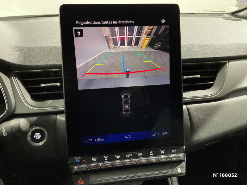 Ceinture centrale arrière 3 points / Kit de gonflage / Tableau de bord avec écran numérique et personnalisable 10" / Frein de parking électrique avec fonction Auto-Hold / Notice d'utilisation digitale embarqué dans le système multimédia du véhicule / Sans pontets AR / Feux AR 3D / Alerte franchissement de ligne et assistant maintien dans la voie / Rétroviseur intérieur chrome frameless / Alerte détection de fatigue / Prédisposition éthylotest / Compartiment de coffre / My Safety switch (raccourci vers configuration personnalisée des aides à la conduite) / Miroirs de courtoisie rétroéclairés / Indicateur de changement de vitesse / Jantes alliage 18'' diamantées Gravity / Sellerie Techno / Système multimédia openR link 10.4" avecGoogle intégré / Feux AR avec signature lumineuse Y / Système de contrôle de trajectoire ESC avec aide au démarrage en côte / Ouverture du hayon manuelle / Alerte Distance Sécurité / Poignées de portes ton caisse / Répétiteurs latéraux de changement de direction / Antenne Requin / Système ISOFIX (i-Size) aux places latérales AR et passager AV / Aide au parking AV/AR et latéral / Eclairage AV et AR Full LED Pure Vision / Renault Multi-sense / Boitier connect AIVC / Cartographie Standard