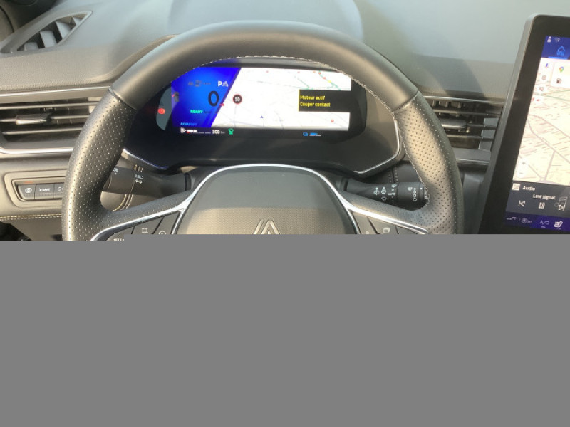 Alerte de distance de securite / Alerte detection de fatigue / Alerte franchissement de ligne et assistant maintien dans la voie / Alerte sortie securisee des occupants / Antenne Requin / Avertisseur d'angle mort et detection AR avec centrage dans la voie / Avertisseur de sortie de stationnement en marche AR avec freinage d'urgence automatique / Boitier connect AIVC / Camera 3D vision 360° / Cartographie Standard / Ceinture centrale AR 3 points / Compartiment de coffre / Conduite hybride predictive / Eclairage AV et AR Full LED Pure Vision / Feux AR 3D / Feux AR avec signature lumineuse Y / Frein de parking electrique avec fonction Auto-Hold / Hayon motorise main libre / Indicateur de changement de vitesse / Jantes alliage 19'' diamantees Pulsar / Kit de gonflage / Miroirs de courtoisie retroeclaires / My Safety switch / Notice d'utilisation digitale embarque dans le systeme multimedia du vehicule / Parking mains-libres / Poignees de portes ton caisse / Renault Multi-sense / Repetiteurs lateraux de changement de direction / Retroviseur interieur chrome frameless / Sieges AV a reglage electrique 6 voies et conducteur reglage manuel lombaire / Systeme de controle de trajectoire ESC avec aide au demarrage en cote / Systeme ISOFIX (i-Size) aux places laterales AR et passager AV / Systeme multimedia openR link 10.4" avecGoogle integre / Tableau de bord avec ecran numerique et personnalisable 10" / Volant chauffant