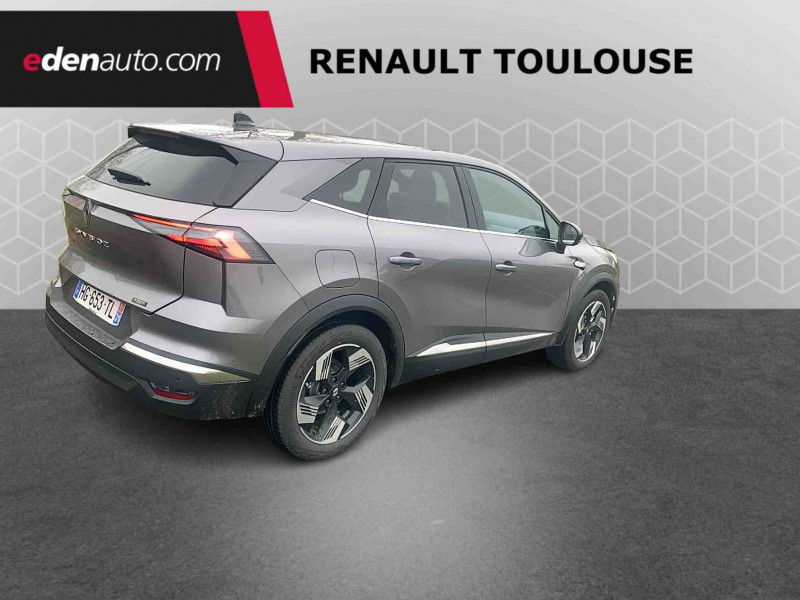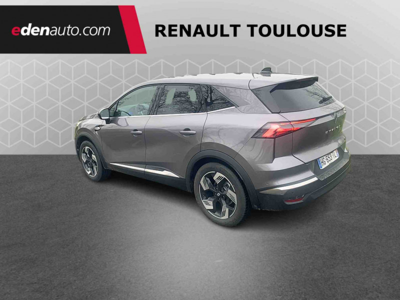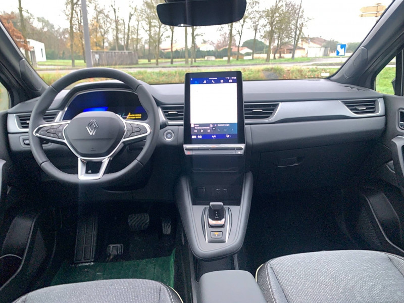 Aide au parking AV/AR et latéral / Alerte de distance de sécurité / Alerte détection de fatigue / Alerte franchissement de ligne et assistant maintien dans la voie / Antenne Requin / Boîte de vitesse hybride multimode 6 rapports / Boitier connect AIVC / Cartographie Standard / Ceinture centrale AR 3 points / Compartiment de coffre / Contrôle de la traction (TCS) / Eclairage AV et AR Full LED Pure Vision / Feux AR 3D / Feux AR avec signature lumineuse Y / Frein de parking électrique avec fonction Auto-Hold / Harmonie noire / Indicateur de changement de vitesse / Jantes alliage 18'' diamantées Gravity / Kit de gonflage / Maintenance connectée, incluse pendant 8 ans / Miroirs de courtoisie rétroéclairés / Mise à jour système (via firmware over the air FOTA), inclus pendant 5 ans / My Safety switch (raccourci vers configuration personnalisée des aides à la conduite) / Ouverture du hayon manuelle / Pack connected driving, inclus pendant 5 ans / Pack contrôle à distance (via l'application My Renault), inclus pendant 5 ans / Poignées de portes ton caisse / Prédisposition éthylotest / Renault Multi-sense / Répétiteurs latéraux de changement de direction / Rétroviseur intérieur chrome frameless / Sellerie Techno / Système de contrôle de trajectoire ESC avec aide au démarrage en côte / Système ISOFIX (i-Size) aux places latérales AR et passager AV / Système multimédia openR link 10.4" avecGoogle intégré / Tableau de bord avec écran numérique et personnalisable 10"
