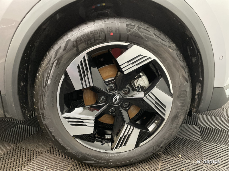 Boitier connect AIVC / Cartographie Standard / Tableau de bord avec écran numérique et personnalisable 10" / Frein de parking électrique avec fonction Auto-Hold / Feux AR 3D / Alerte franchissement de ligne et assistant maintien dans la voie / Rétroviseur intérieur chrome frameless / Alerte détection de fatigue / Prédisposition éthylotest / Miroirs de courtoisie rétroéclairés / Peinture opaque vernie / Jantes alliage 18'' diamantées Gravity / Sellerie Techno / Système multimédia openR link 10.4" avecGoogle intégré / Feux AR avec signature lumineuse Y / Système de contrôle de trajectoire ESC avec aide au démarrage en côte / Ouverture du hayon manuelle / Contrôle de la traction (TCS) / Boîte de vitesse automatique 4 rapports / Répétiteurs latéraux de changement de direction / Antenne Requin / Compartiment de coffre / My Safety switch (raccourci vers configuration personnalisée des aides à la conduite) / Système ISOFIX (i-Size) aux places latérales AR et passager AV / Aide au parking AV/AR et latéral / Eclairage AV et AR Full LED Pure Vision / Renault Multi-sense / Harmonie noire / Ceinture centrale arrière 3 points / Kit de gonflage / Indicateur de changement de vitesse / Alerte Distance Sécurité / Poignées de portes ton caisse