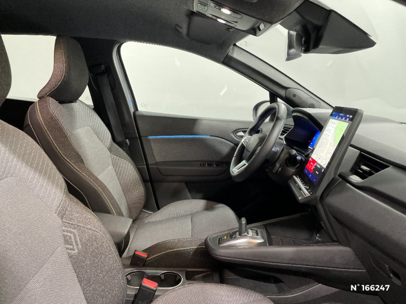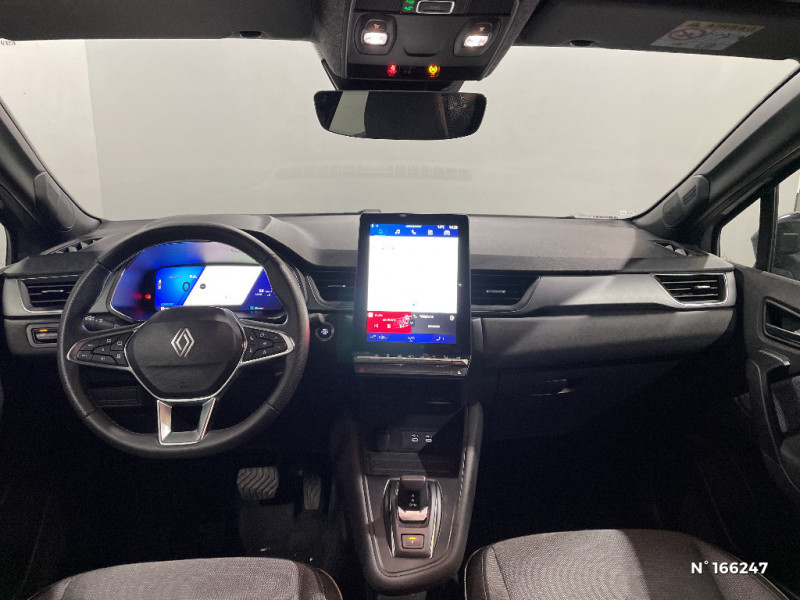 Tableau de bord avec écran numérique et personnalisable 10" / Frein de parking électrique avec fonction Auto-Hold / Feux AR 3D / Alerte franchissement de ligne et assistant maintien dans la voie / Rétroviseur intérieur chrome frameless / Alerte détection de fatigue / Prédisposition éthylotest / Compartiment de coffre / My Safety switch (raccourci vers configuration personnalisée des aides à la conduite) / Miroirs de courtoisie rétroéclairés / Peinture opaque vernie / Jantes alliage 18'' diamantées Gravity / Sellerie Techno / Système multimédia openR link 10.4" avecGoogle intégré / Feux AR avec signature lumineuse Y / Système de contrôle de trajectoire ESC avec aide au démarrage en côte / Ouverture du hayon manuelle / Contrôle de la traction (TCS) / Boîte de vitesse automatique 4 rapports / Pack contrôle à distance (via l?application My Renault), inclus pendant 5 ans / Mise à jour système (via firmware over the air FOTA), inclus pendant 5 ans / Maintenance connectée, incluse pendant 8 ans / Pack connected driving, inclus pendant 5 ans / Boîte de vitesse hybride multimode 6 rapports / Antenne Requin / Système ISOFIX (i-Size) aux places latérales AR et passager AV / Aide au parking AV/AR et latéral / Eclairage AV et AR Full LED Pure Vision / Renault Multi-sense / Harmonie noire / Boitier connect AIVC / Cartographie Standard / Ceinture centrale arrière 3 points / Kit de gonflage / Indicateur de changement de vitesse / Alerte Distance Sécurité / Poignées de portes ton caisse / Répétiteurs latéraux de changement de direction
