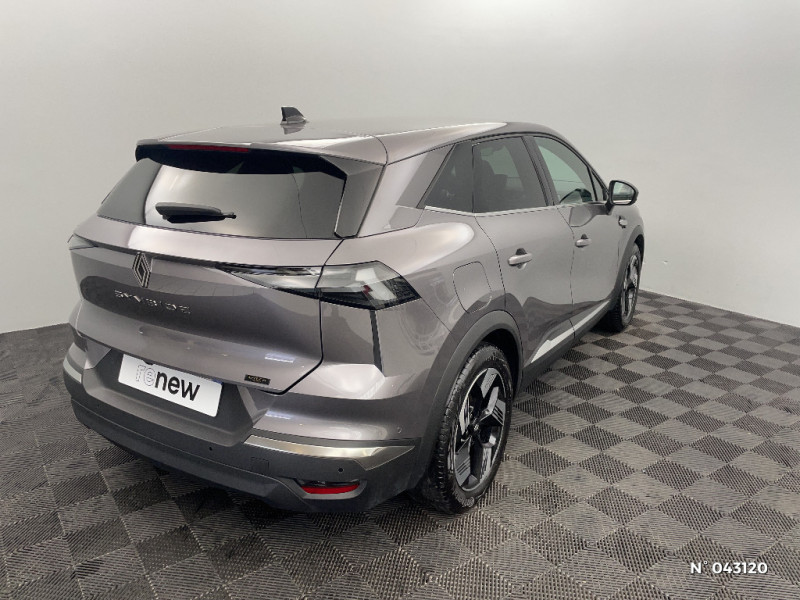 Boîte de vitesse automatique 4 rapports / Répétiteurs latéraux de changement de direction / Antenne Requin / Système ISOFIX (i-Size) aux places latérales AR et passager AV / Renault Multi-sense / Harmonie noire / Boitier connect AIVC / Cartographie Standard / Tableau de bord avec écran numérique et personnalisable 10" / Frein de parking électrique avec fonction Auto-Hold / Feux AR 3D / Alerte franchissement de ligne et assistant maintien dans la voie / Rétroviseur intérieur chrome frameless / Alerte détection de fatigue / Prédisposition éthylotest / Compartiment de coffre / My Safety switch (raccourci vers configuration personnalisée des aides à la conduite) / Miroirs de courtoisie rétroéclairés / Peinture opaque vernie / Jantes alliage 18'' diamantées Gravity / Sellerie Techno / Système multimédia openR link 10.4" avecGoogle intégré / Feux AR avec signature lumineuse Y / Système de contrôle de trajectoire ESC avec aide au démarrage en côte / Ouverture du hayon manuelle / Contrôle de la traction (TCS) / Aide au parking AV/AR et latéral / Eclairage AV et AR Full LED Pure Vision / Ceinture centrale arrière 3 points / Kit de gonflage / Indicateur de changement de vitesse / Alerte Distance Sécurité / Poignées de portes ton caisse