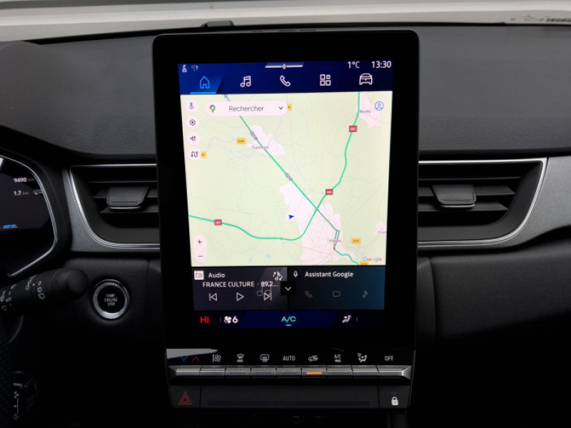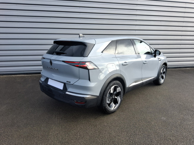 Aide au parking AV/AR et lateral / Alerte de distance de securite / Alerte detection de fatigue / Alerte franchissement de ligne et assistant maintien dans la voie / Antenne Requin / Boite de vitesse automatique 4 rapports / Cartographie Standard / Ceinture centrale AR 3 points / Compartiment de coffre / Controle de la traction (TCS) / Eclairage AV et AR Full LED Pure Vision / Feux AR 3D / Feux AR avec signature lumineuse Y / Frein de parking electrique avec fonction Auto-Hold / Harmonie noire / Indicateur de changement de vitesse / Jantes alliage 18'' diamantees Gravity / Kit de gonflage / Miroirs de courtoisie retroeclaires / My Safety switch / Poignees de portes ton caisse / Renault Multi-sense / Repetiteurs lateraux de changement de direction / Retroviseur interieur chrome frameless / Sellerie Techno / Systeme de controle de trajectoire ESC avec aide au demarrage en cote / Systeme multimedia openR link 10.4" avecGoogle integre / Tableau de bord avec ecran numerique et personnalisable 10"