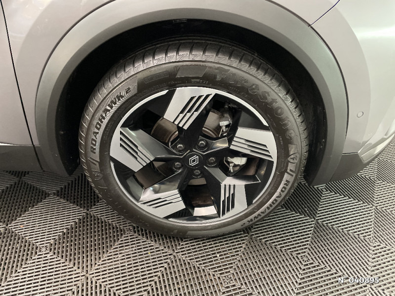 Eclairage AV et AR Full LED Pure Vision / Kit de gonflage / Indicateur de changement de vitesse / Alerte Distance Sécurité / Poignées de portes ton caisse / Répétiteurs latéraux de changement de direction / Antenne Requin / Système ISOFIX (i-Size) aux places latérales AR et passager AV / Ceinture centrale arrière 3 points / Tableau de bord avec écran numérique et personnalisable 10" / Frein de parking électrique avec fonction Auto-Hold / Feux AR 3D / Alerte franchissement de ligne et assistant maintien dans la voie / Rétroviseur intérieur chrome frameless / Alerte détection de fatigue / Prédisposition éthylotest / Compartiment de coffre / My Safety switch (raccourci vers configuration personnalisée des aides à la conduite) / Miroirs de courtoisie rétroéclairés / Peinture opaque vernie / Jantes alliage 18'' diamantées Gravity / Sellerie Techno / Système multimédia openR link 10.4" avecGoogle intégré / Feux AR avec signature lumineuse Y / Système de contrôle de trajectoire ESC avec aide au démarrage en côte / Ouverture du hayon manuelle / Contrôle de la traction (TCS) / Boîte de vitesse automatique 4 rapports / Aide au parking AV/AR et latéral / Renault Multi-sense / Harmonie noire / Boitier connect AIVC / Cartographie Standard