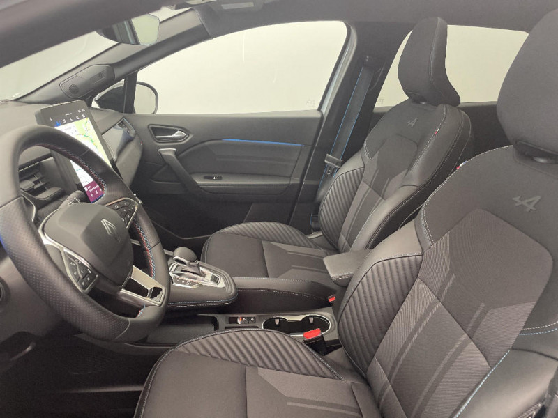 My Safety switch (raccourci vers configuration personnalisée des aides à la conduite) / Harmonie esprit Alpine / Miroirs de courtoisie rétroéclairés / Peinture opaque vernie / Jantes alliage 19'' diamantées Alpine Elixir / Sellerie Esprit Alpine / Système multimédia openR link 10.4" avecGoogle intégré / Feux AR avec signature lumineuse Y / Système de contrôle de trajectoire ESC avec aide au démarrage en côte / Ouverture du hayon manuelle / Contrôle de la traction (TCS) / Boîte de vitesse automatique 4 rapports / Système ISOFIX (i-Size) aux places latérales AR et passager AV / Aide au parking AV/AR et latéral / Eclairage AV et AR Full LED Pure Vision / Renault Multi-sense / Boitier connect AIVC / Cartographie Standard / Kit de gonflage / Indicateur de changement de vitesse / Alerte Distance Sécurité / Poignées de portes ton caisse / Volant chauffant / Ceinture centrale arrière 3 points / Répétiteurs latéraux de changement de direction / Antenne Requin / Design esprit Alpine extérieur / Design esprit Alpine intérieur / Rétroviseur intérieur chrome frameless / Alerte détection de fatigue / Prédisposition éthylotest / Compartiment de coffre / Tableau de bord avec écran numérique et personnalisable 10" / Frein de parking électrique avec fonction Auto-Hold / Feux AR 3D / Alerte franchissement de ligne et assistant maintien dans la voie