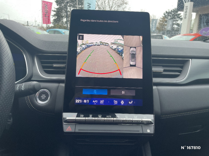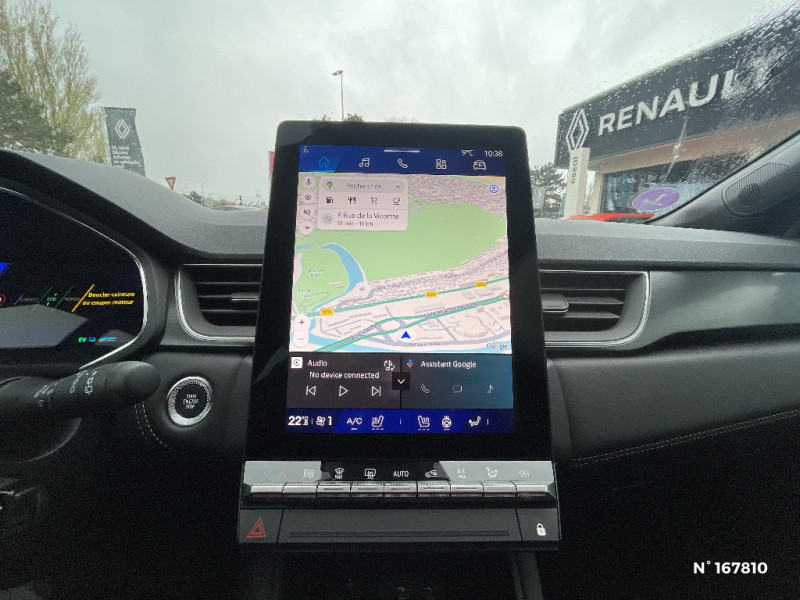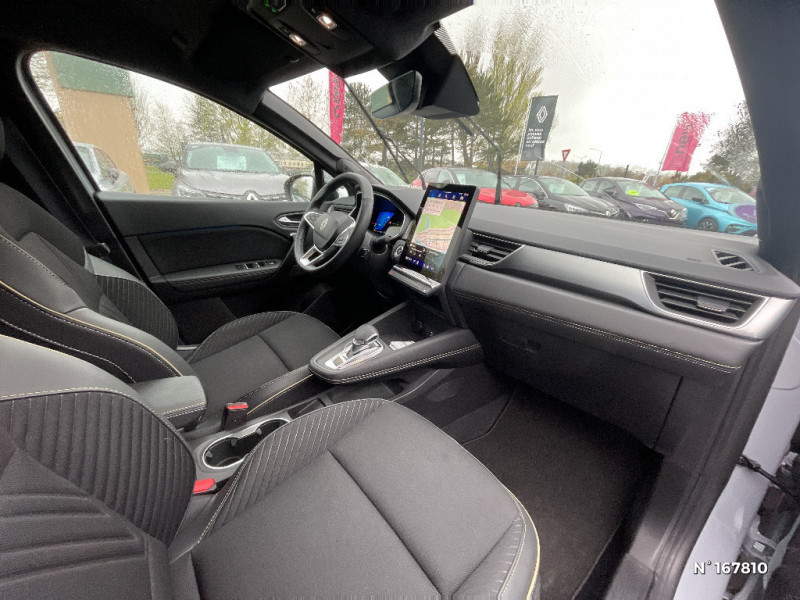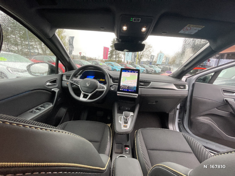 Contrôle de la traction (TCS) / Boîte de vitesse automatique 4 rapports / Harmonie Ionic / Système multimédia openR link 10.4" avecGoogle intégré / Feux AR avec signature lumineuse Y / Système de contrôle de trajectoire ESC avec aide au démarrage en côte / Sièges AV à réglage électrique 6 voies et conducteur réglage manuel lombaire / Conduite hybride prédictive / Avertisseur d'angle mort et détection AR avec centrage dans la voie / Parking mains-libres / Jantes alliage 19'' diamantées Pulsar / Avertisseur de sortie de stationnement en marche AR avec freinage d'urgence automatique / Rétroviseur intérieur chrome frameless / Alerte détection de fatigue / Prédisposition éthylotest / Alerte sortie sécurisée des occupants / Compartiment de coffre / My Safety switch (raccourci vers configuration personnalisée des aides à la conduite) / Miroirs de courtoisie rétroéclairés / Répétiteurs latéraux de changement de direction / Caméra 360° / Antenne Requin / Système ISOFIX (i-Size) aux places latérales AR et passager AV / Eclairage AV et AR Full LED Pure Vision / Renault Multi-sense / Boitier connect AIVC / Cartographie Standard / Tableau de bord avec écran numérique et personnalisable 10" / Frein de parking électrique avec fonction Auto-Hold / Feux AR 3D / Caméra 3D vision 360° / Hayon motorisé main libre / Alerte franchissement de ligne et assistant maintien dans la voie / Volant chauffant / Ceinture centrale arrière 3 points / Kit de gonflage / Indicateur de changement de vitesse / Alerte Distance Sécurité / Poignées de portes ton caisse